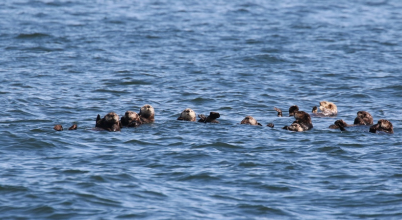 Not long after we departed Shearwater, a large raft of sea otters appeared. Mothers sometimes wrapped their young in floating kelp beds, leaving them on the surface while they dove for food. Sea otters were hunted almost to extinction during decades of high demand for their pelts. While their numbers have rebounded across two-thirds of their historic range, they have not returned to their earlier abundance.