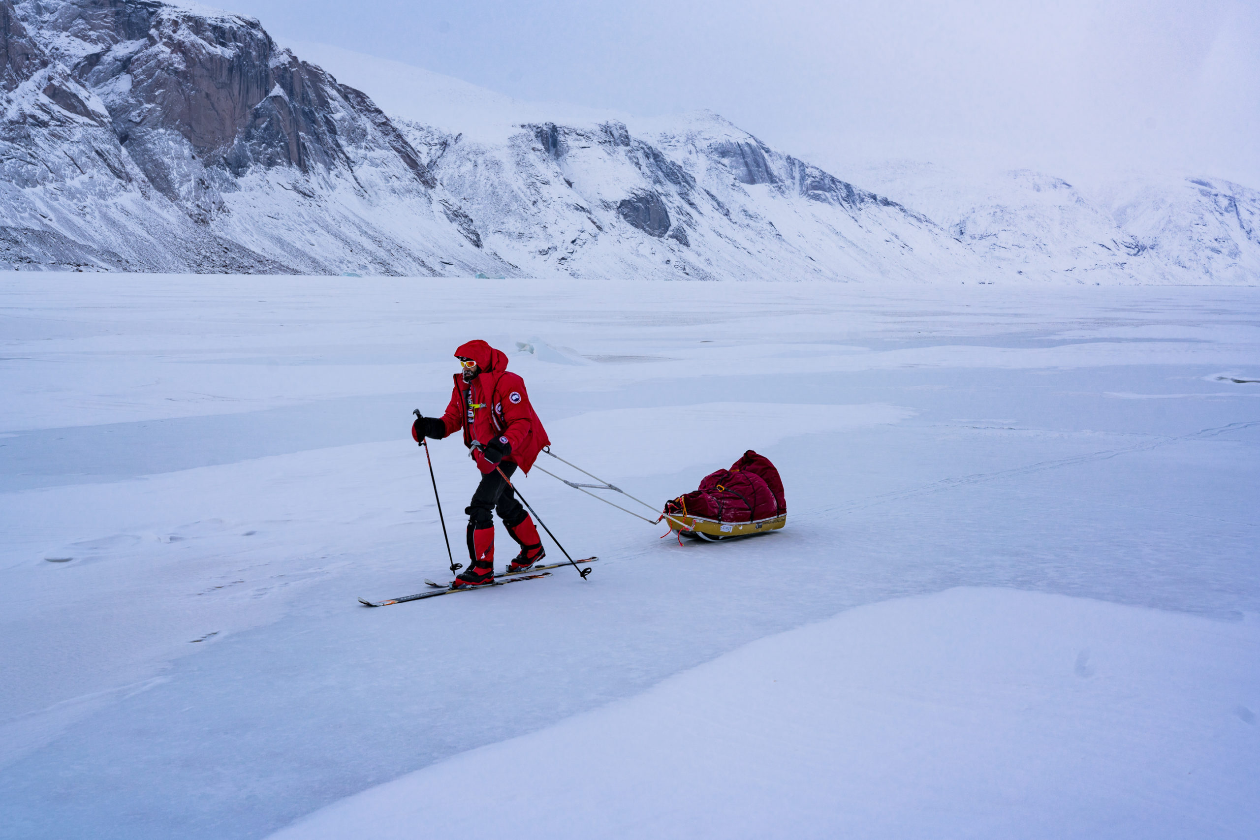 It was both the most terrifying moment in my life and the most liberating moment in my life when I broke through that ice, which, for all intents and purposes, was my mistake. I was scouting ahead of my expedition teammate Stefano and testing the ice. We were a two-man team and we were crossing three separate areas of the Arctic unsupported, with no safety support. This first leg was supposed to be the most straight forward. It was meant to be our warm up. We were dropped by helicopter on the eastern coast and we started making our way in very erratic weather conditions. It had been a weird winter in this area. There was a series of freeze-thaw, freeze-thaw, freeze-thaw which can change ice conditions tremendously.