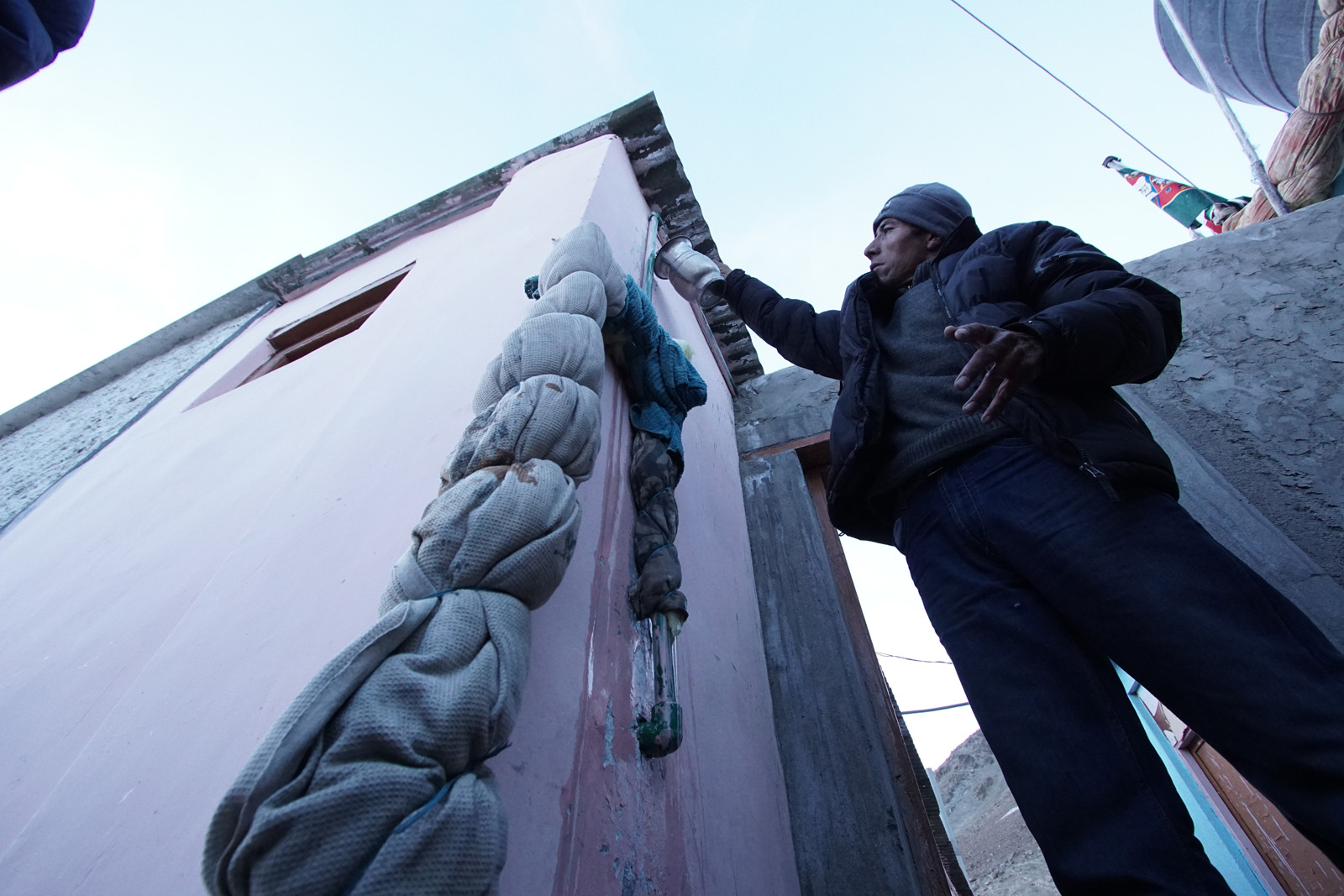 This is Chumatang town in the northeast of Ladakh (land of high passes). It is 140 kms from the capital city of Leh and far from any form of luxury or urban comfort. It is early January and rivulets of the Indus (Sindhu) River that flow close to the home-stay are sheets of ice and glassy in appearance.(The thermometer nailed to the wall of 'Padma Guest House reads' -10 degrees Celsius. Padma is wrapped in a blanket to shield herself from the frigid gust. And the whipping noise of the Buddhist prayer flags indicates the wind speed would be nearly 25 kmph. Her blanket makes her walk in shuffles while she moves towards a small vertical structure marked ‘Toilet’.