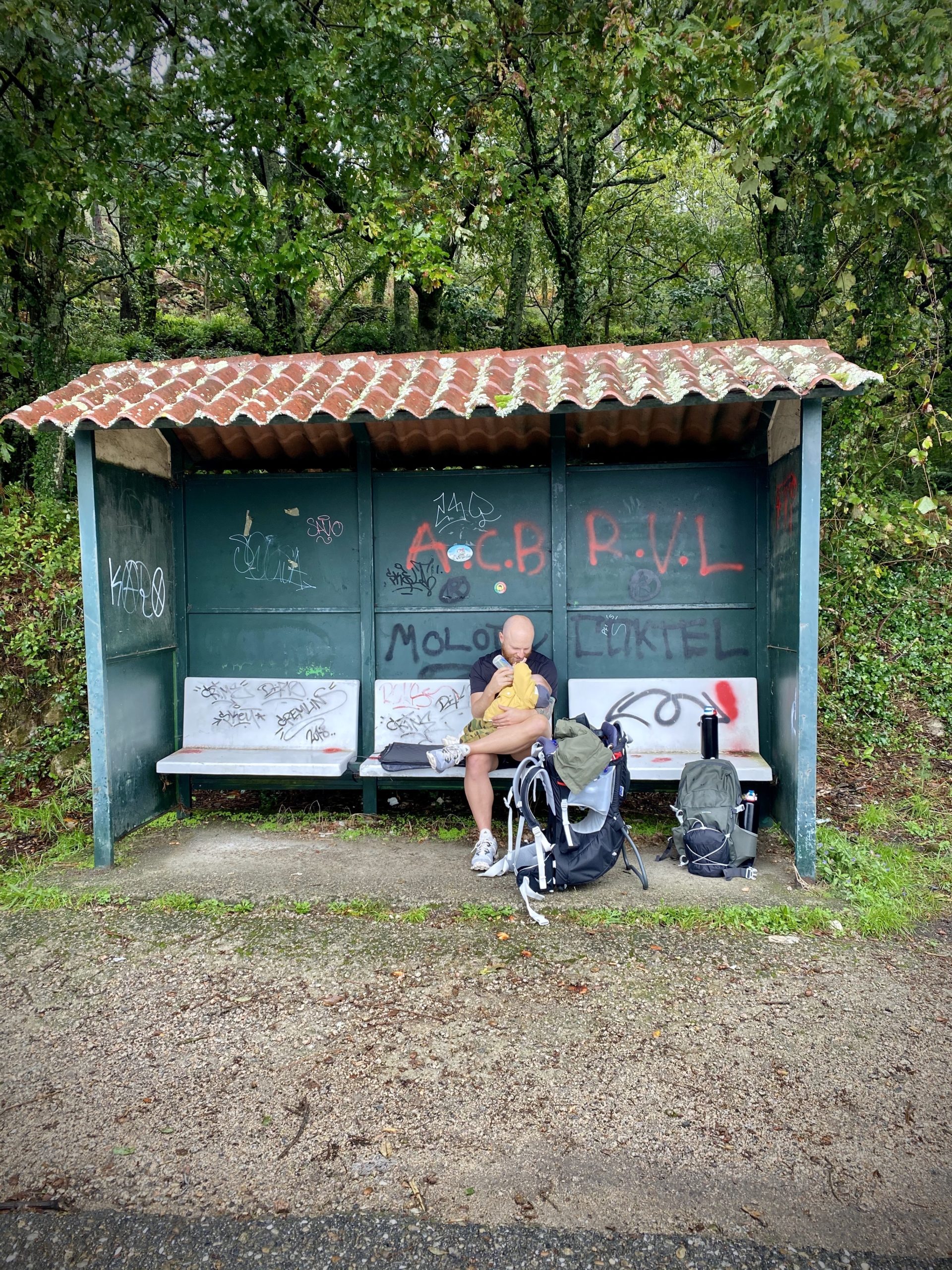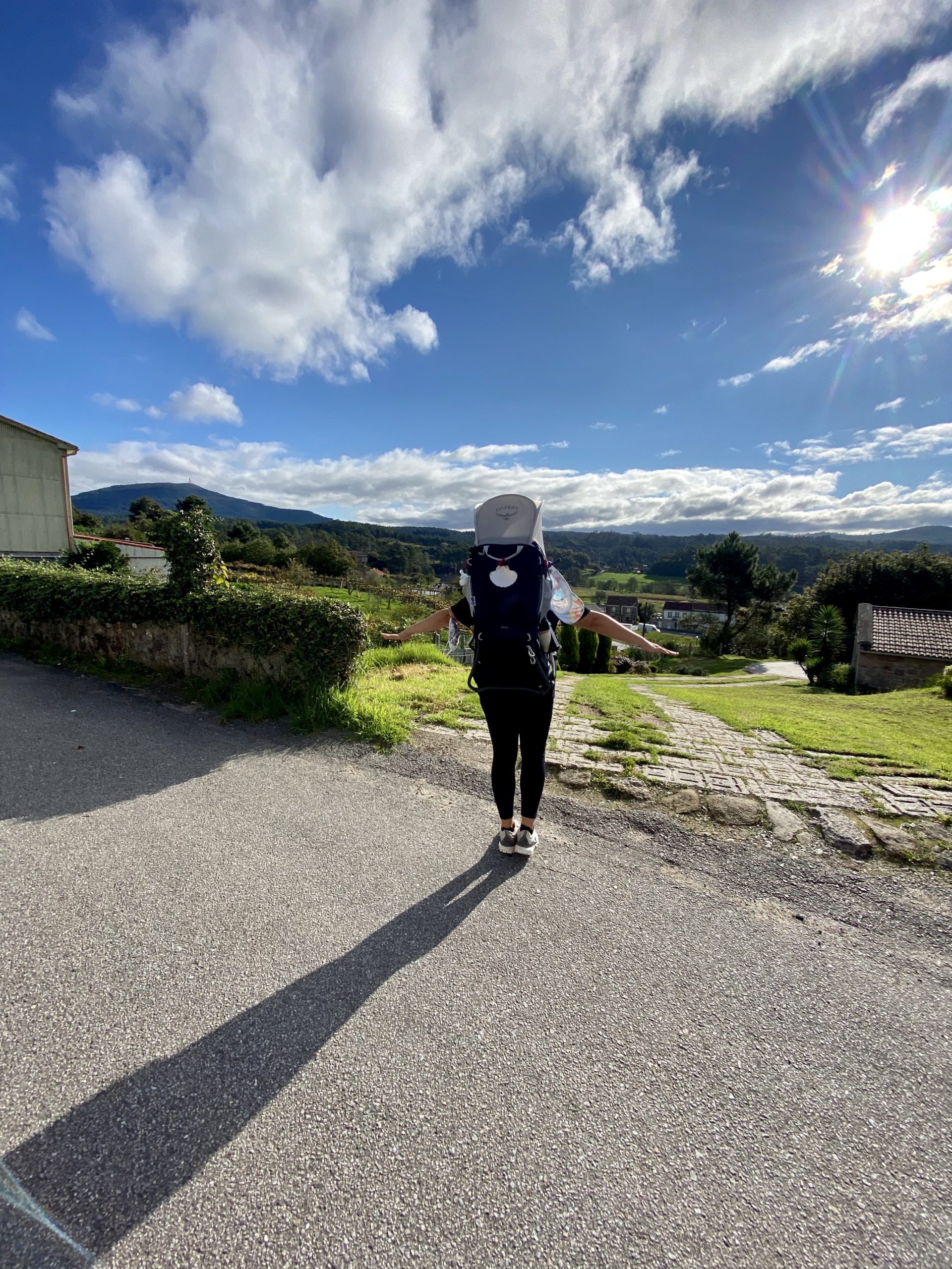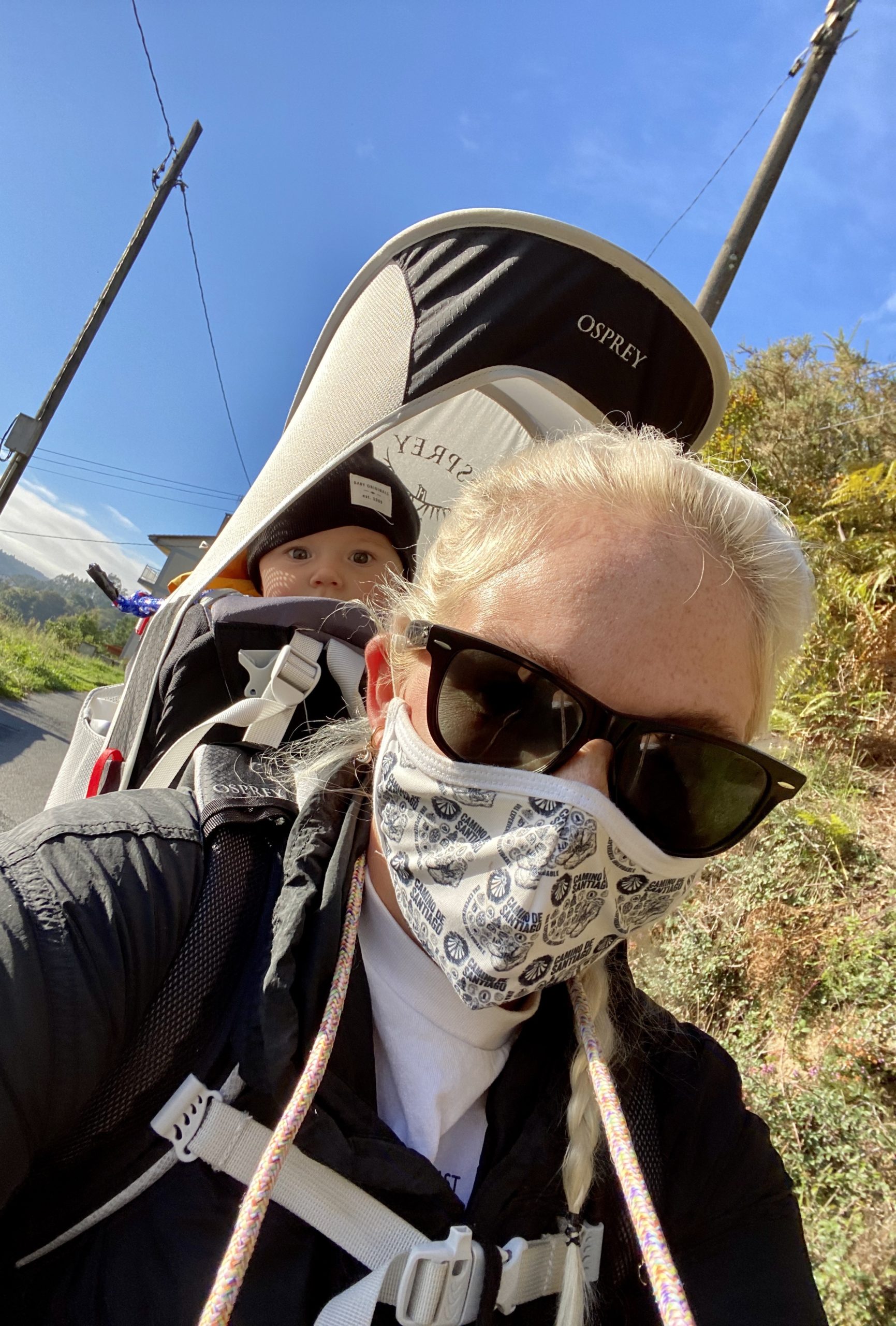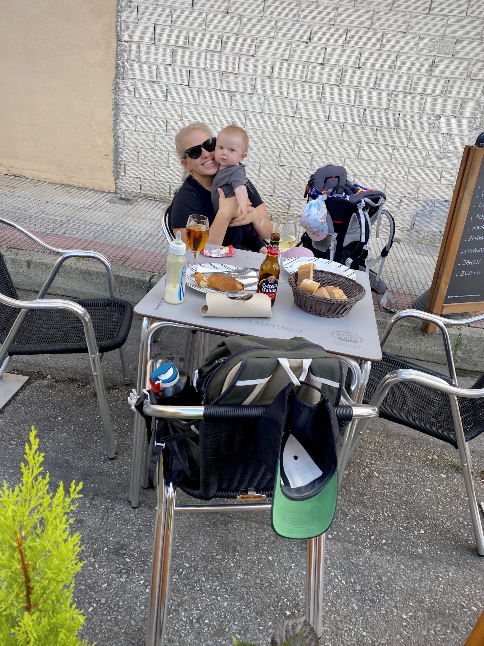 Although we started our journey on the coast, all roads to Santiago eventually become one, and we are now merging with other trails, including the most popular St. James Way. We’re seeing more pilgrims at rest stops and I haven’t sensed this type of communal positive vibe with strangers since I attended outdoor music festivals in California. Another pilgrim who has been on the trail for weeks is shocked when she notices Vahla’s face within my pack. “A baby on the Camino?”