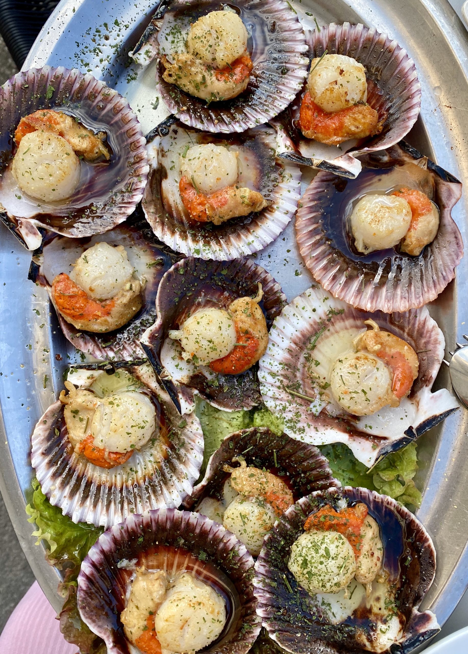 Somehow we failed to learn our lesson from the day before and we skip lunch again, delaying our celebratory post-hike cervezas in lieu of a timely nap for Vahla. Finally, we sit down for our one meal of the day at a roadside restaurant that is literally set inside a roundabout. We delight in a scrumptious feast of scallops and oysters. I take note of how much better a post-hike beer tastes compared to a no-hike beer. Navigating to our hotel with a mask on and scallop breath is not as pleasant.