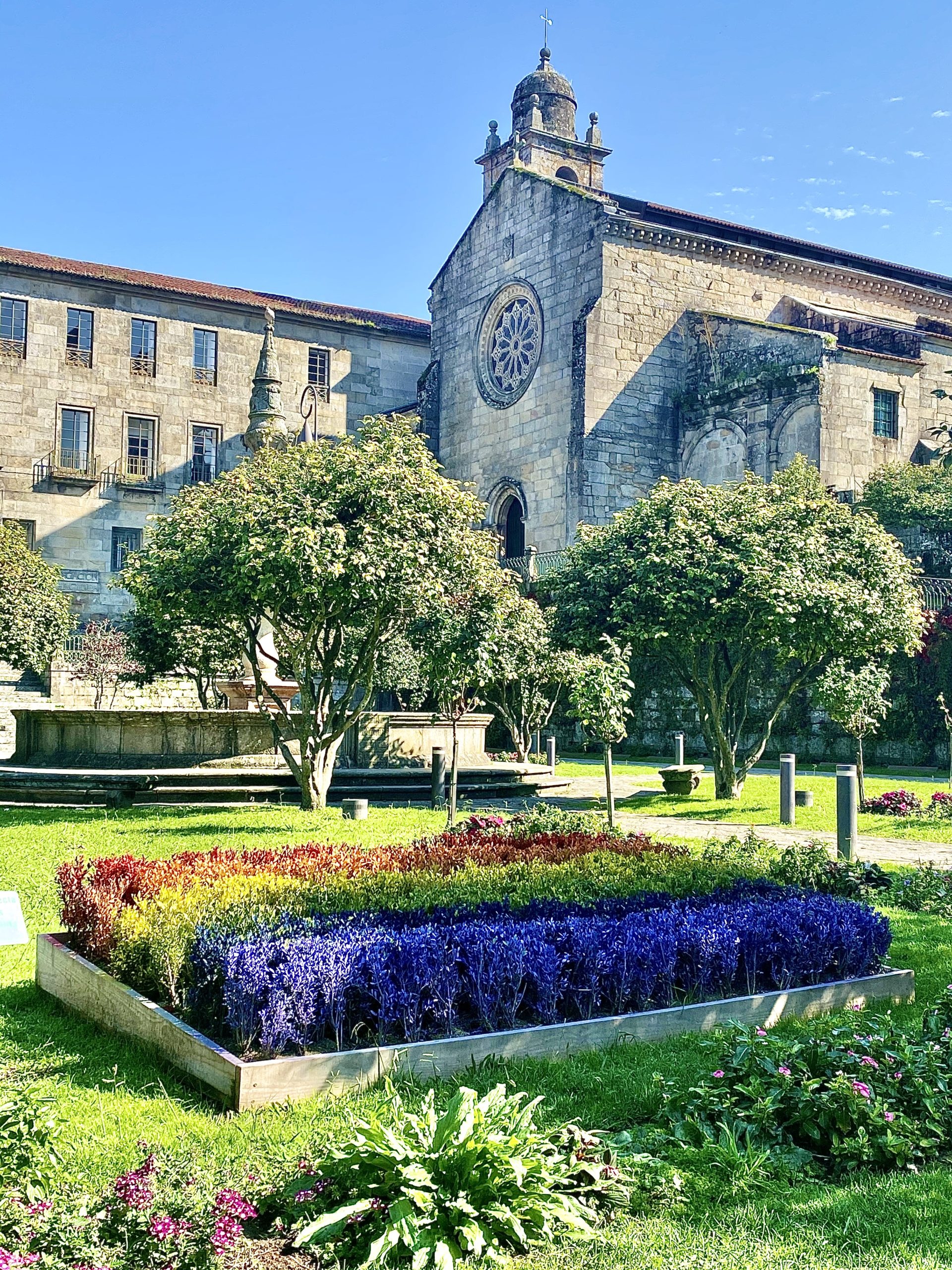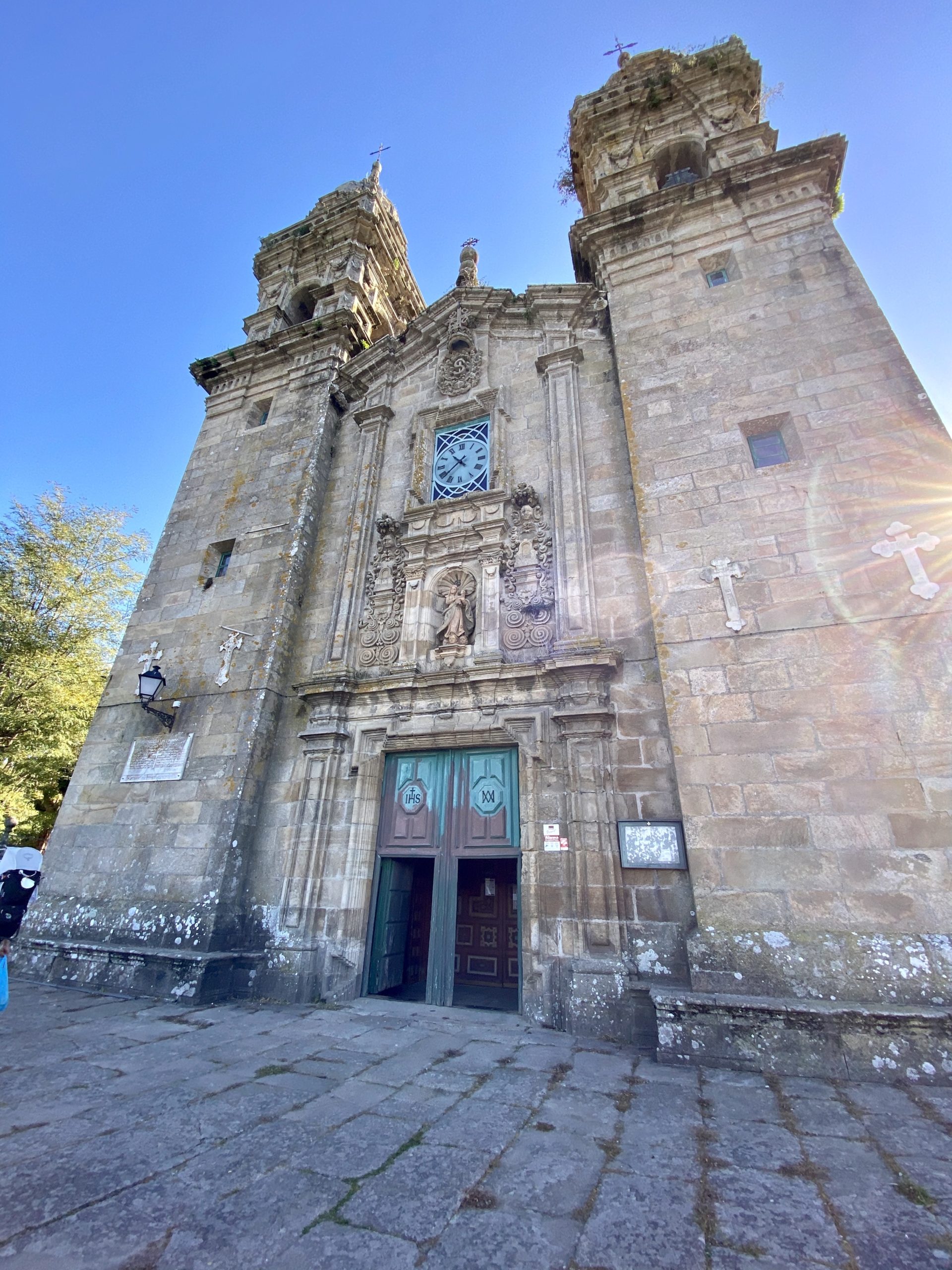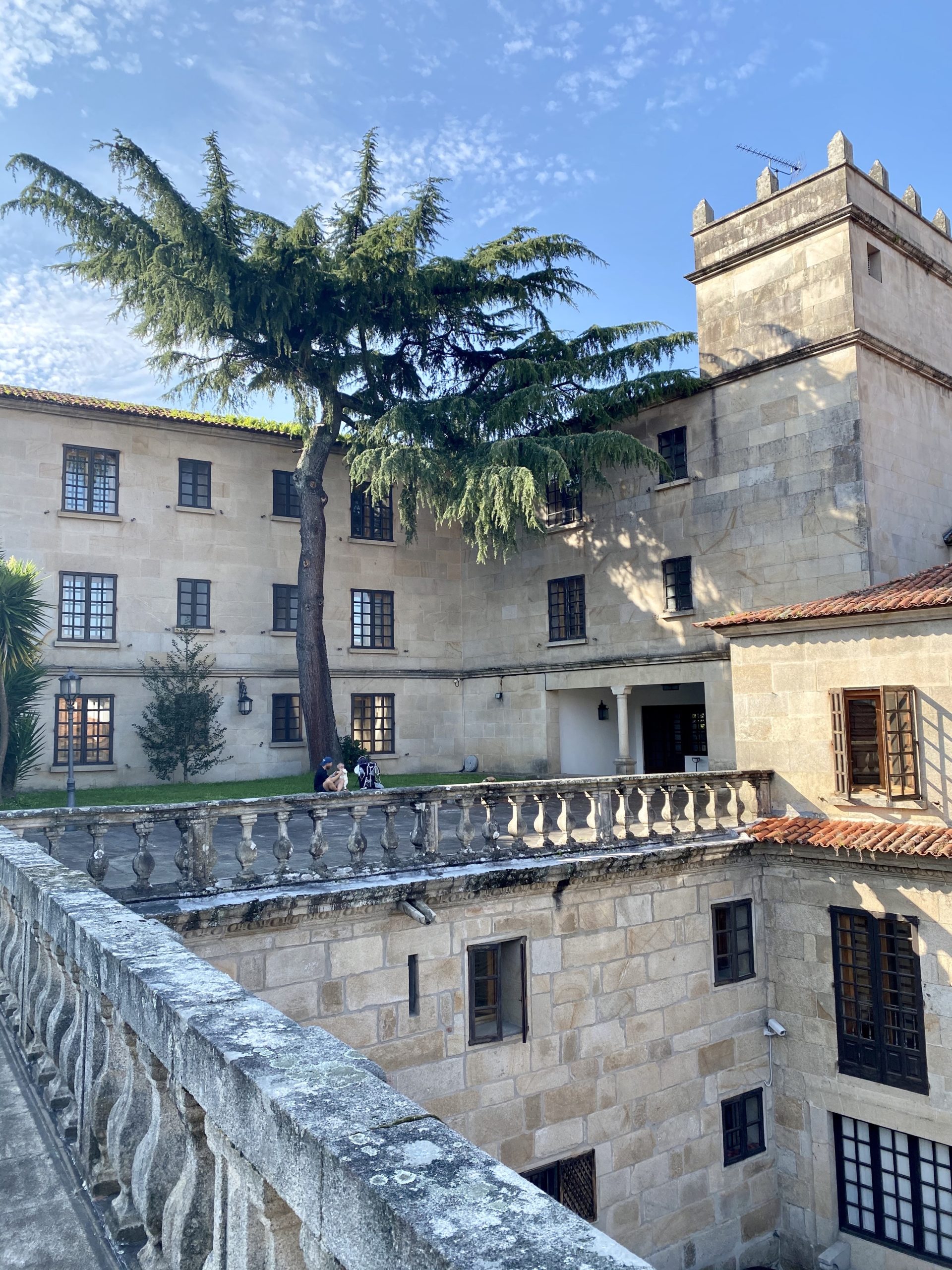We finally curb our excitement to keep marching on by stopping for tapas at the side of the road and the last section of the day traces a busier road past country houses. As we enter the city, we’re immersed in a crowd of people larger than I’ve seen this entire year. “It must be a holiday!” Erin reasons. We are staying in another Parador, the former residence of the counts of Maceda. We picnic on the terrace and keep an eye on Vahla as she rips at the grass while we admire the setting sun as it bakes the stone buildings.