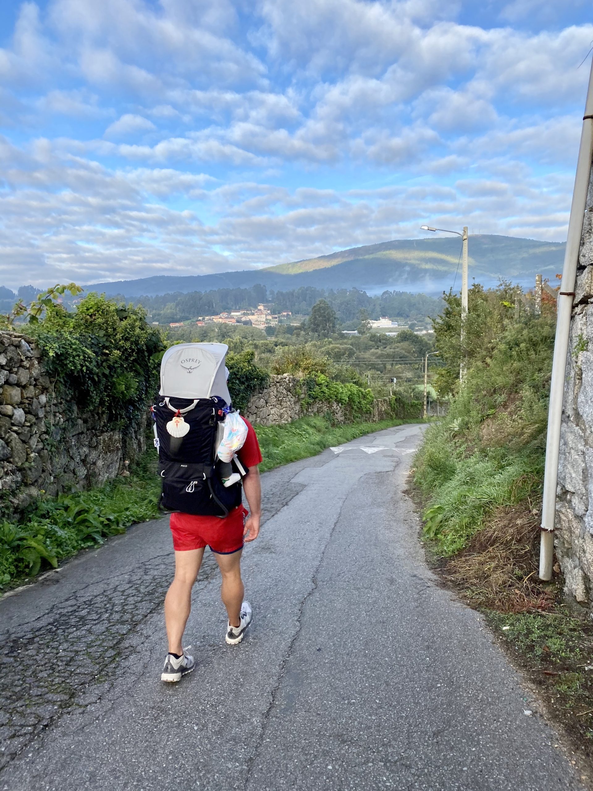 We pass by two other pilgrims who are cloaked head to toe in rain gear, poking the ground with their Nordic walking poles. For a second, I doubt my choice of shorts and t-shirt, but then I think about minimalist, alpine hiker Peter Van Geit, whose Himalayan journeys I’ve covered for the magazine, and I’m reassured that a little cold air won’t kill me.