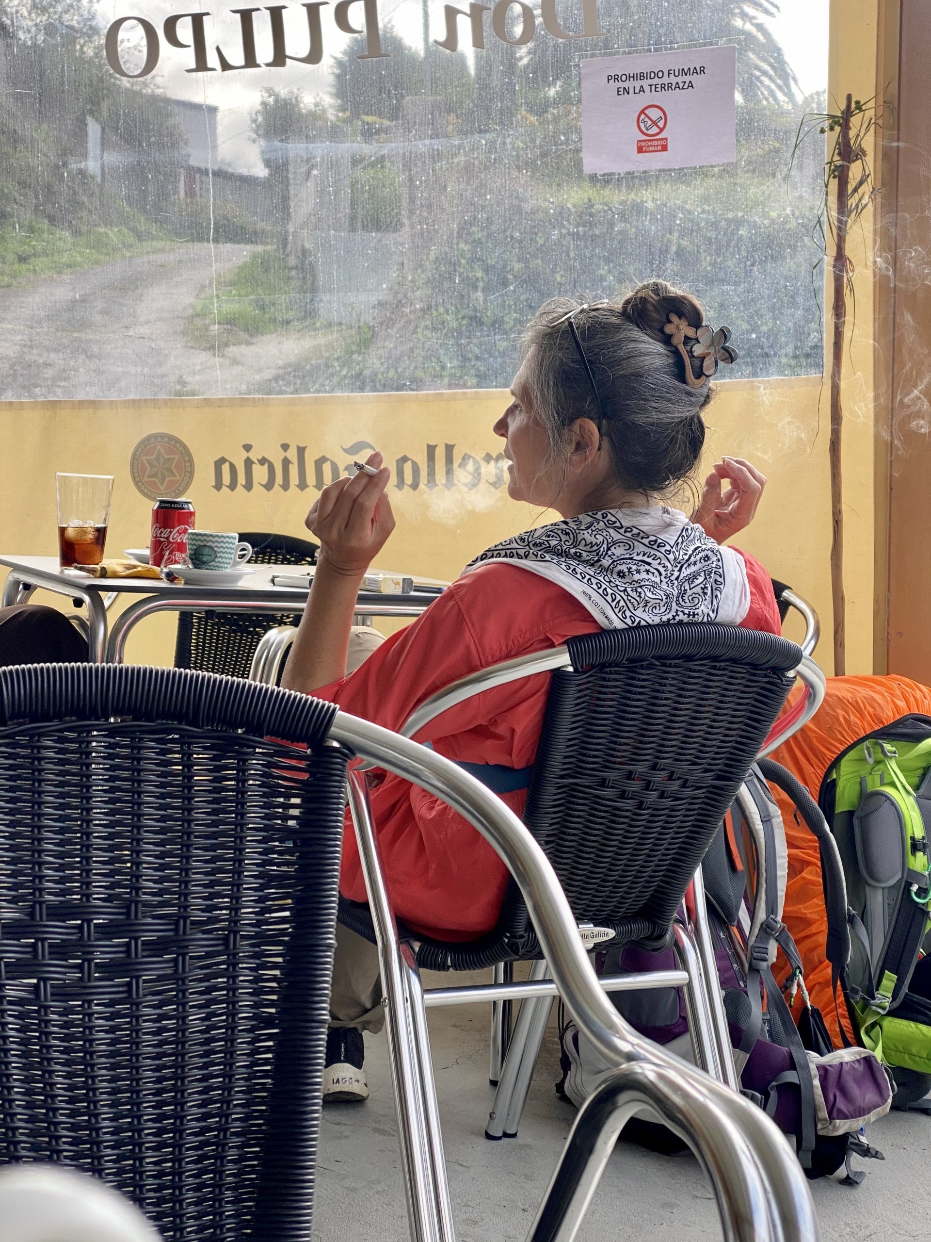 Due to COVID’s travel restrictions, it’s safe to say that we’re the only Americans walking right now, which makes cultural differences stand out. At our first stop 5.5 miles in, a middle-aged pilgrim at the next table over shoots Vahla a smile and then proceeds to chain-smoke through her meal. I stare at her like she is one of the giant black slugs that we skip over on the trail.