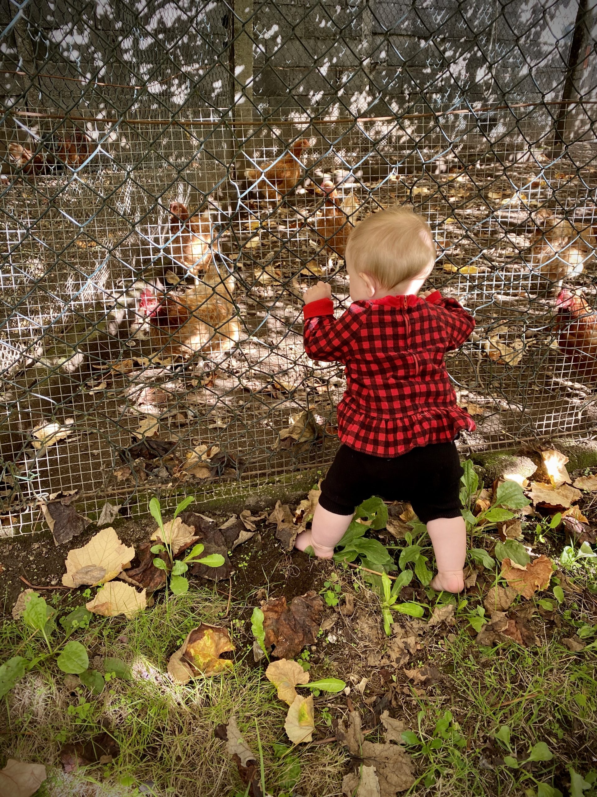 What a way to hit a milestone! Vahla stands up on her own for the first time today at a chicken coop under vineyard trellises in the Galician countryside. She’s wearing Erin's plaid shirt that her mom has been saving for 35 years. It reminds me that, although our path this week is a straight line to Santiago, life comes around full circle.