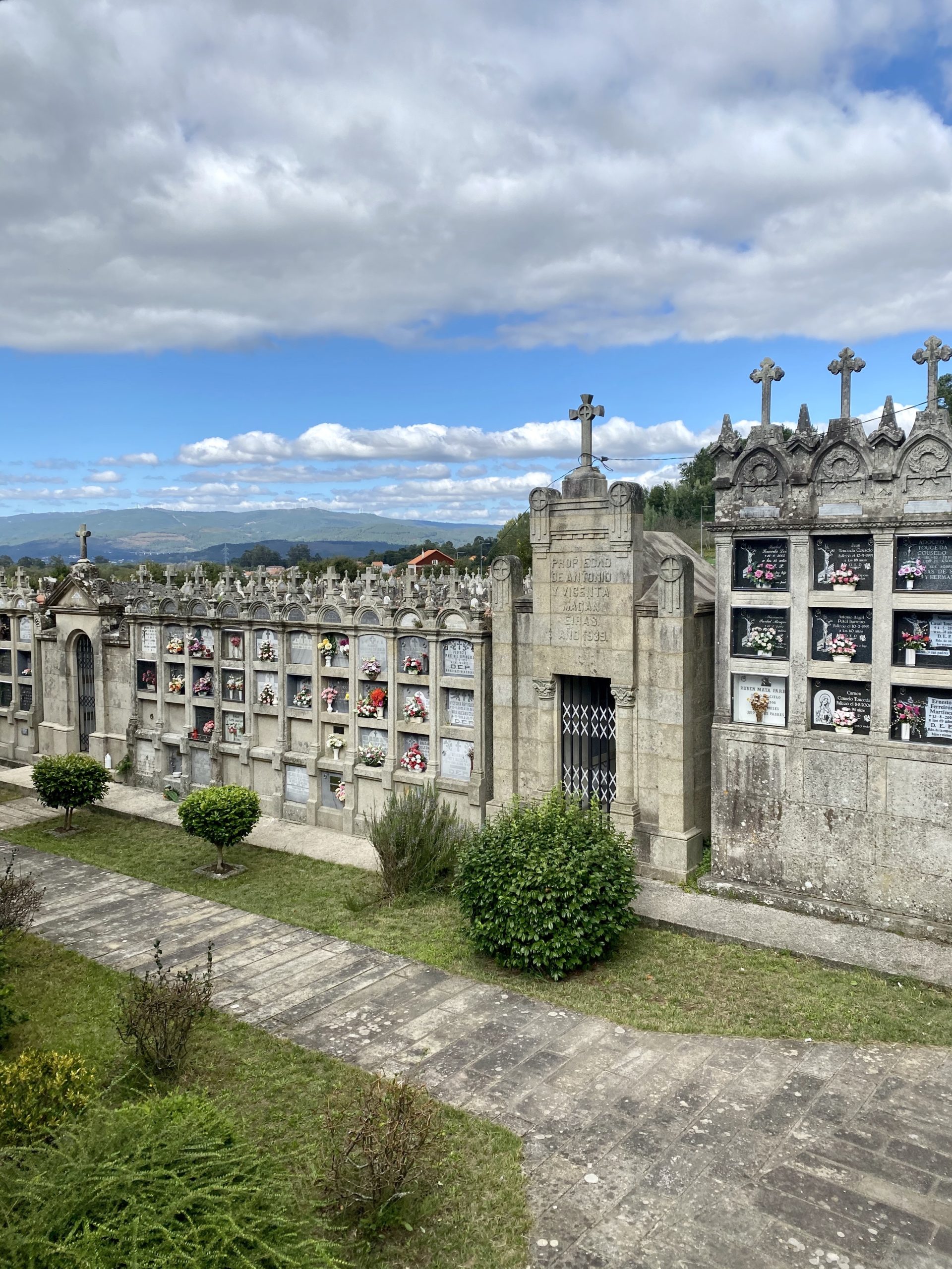 Redondela is known as the “Village of the viaducts,” and it lives up to its moniker. Traversing a narrow bridge over the river seems perilous with the oncoming car and truck traffic, but its beauty makes it another highlight of the trip. I relish in the slower pace by taking out my Fuji X100F to capture the gritty texture of the stone. I’m surprised at how intimate the route is on the other side of the bridge. We wind through quaint residential streets as children wearing back-packs are leaving the house to walk to school. Each house has a garden and either a chicken coop or a workshop with wood blocks and painter rolls. Dogs and sheep are around every corner. Singing “Old MacDonald” is going to make a lot more sense to Vahla after this morning.