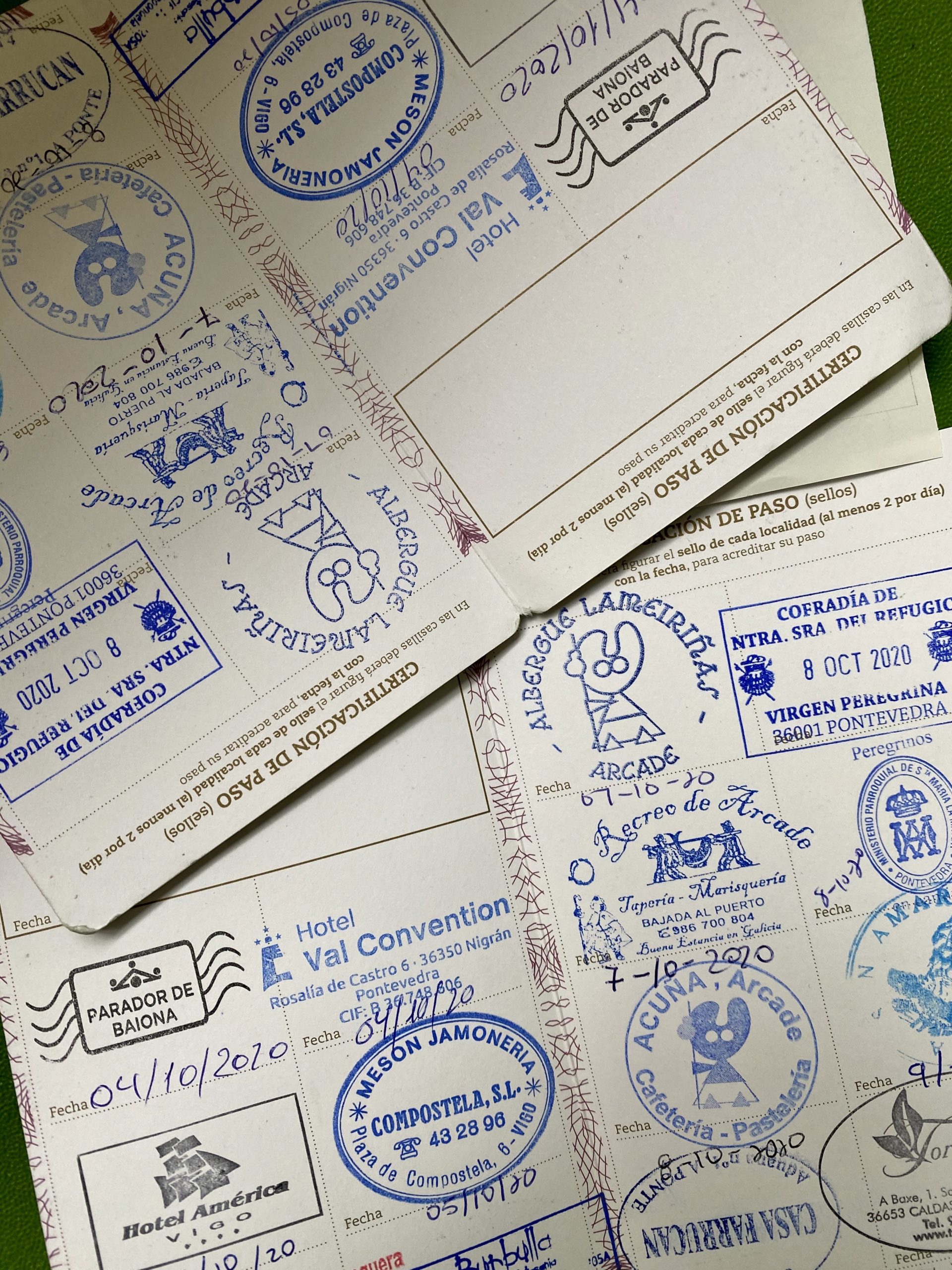That’s when one of my biggest fears for the trip comes true - a sudden downpour. We pause to let Vahla observe some of the other children on a playground when, without warning, the sky starts pelting heavy rain down on us. I hustle into the nearest shelter which happens to be the smallest chapel I’ve ever seen. It’s dark and drafty with a few rows of empty pews. The religious pilgrimage aspect of the Camino is already playing out. The tradition encourages you to visit many churches on your way to Santiago, and in order to receive your Compostela certificate at the end, you must keep track of them with stamps, like a spiritual scavenger hunt.