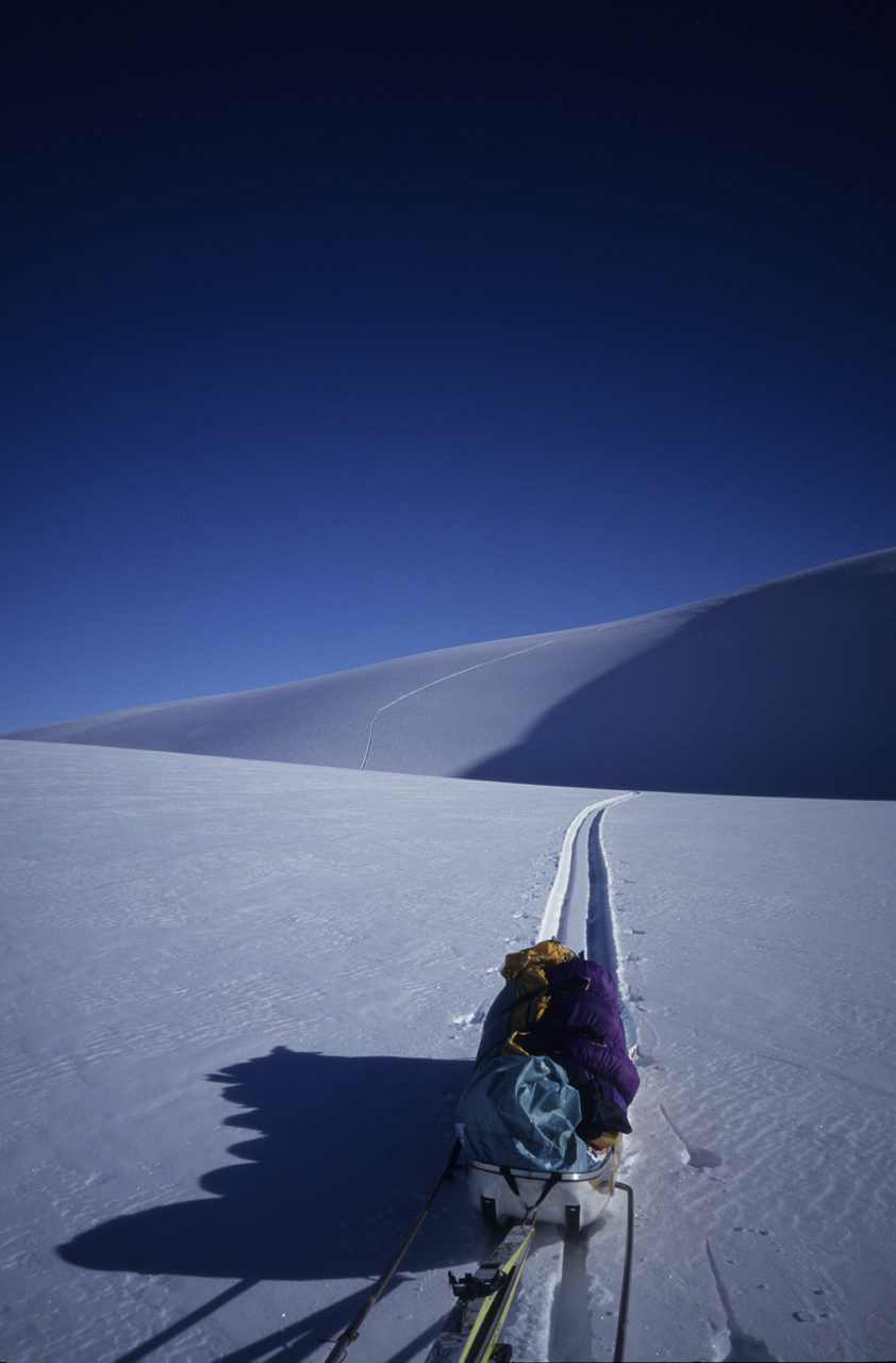 Børge Ousland: For me, the bottom line for being supported or not is if you have some outside help. It’s between being totally self-reliant or not. And then method of transportation is secondary. Because you could always walk instead of ski. Is ski “support?” If you stand on top of a hill, and you let yourself go, you will move forward if you have a ski. It’s just about using the techniques that are available to you to move forward. I never considered that using a ski sail, which I did on parts of the trip, would be a controversy in the future. I couldn’t use it on the way to the South Pole because of the headwinds and I couldn’t use it in other parts because of the sastrugi. Then some guys made up their own definitions of doing a traverse that is the first-ever “unsupported” and “unassisted,” thinking normal people will never know the difference, then it sounds like you’re the first ever to do it, and that’s actually what’s written in the papers.