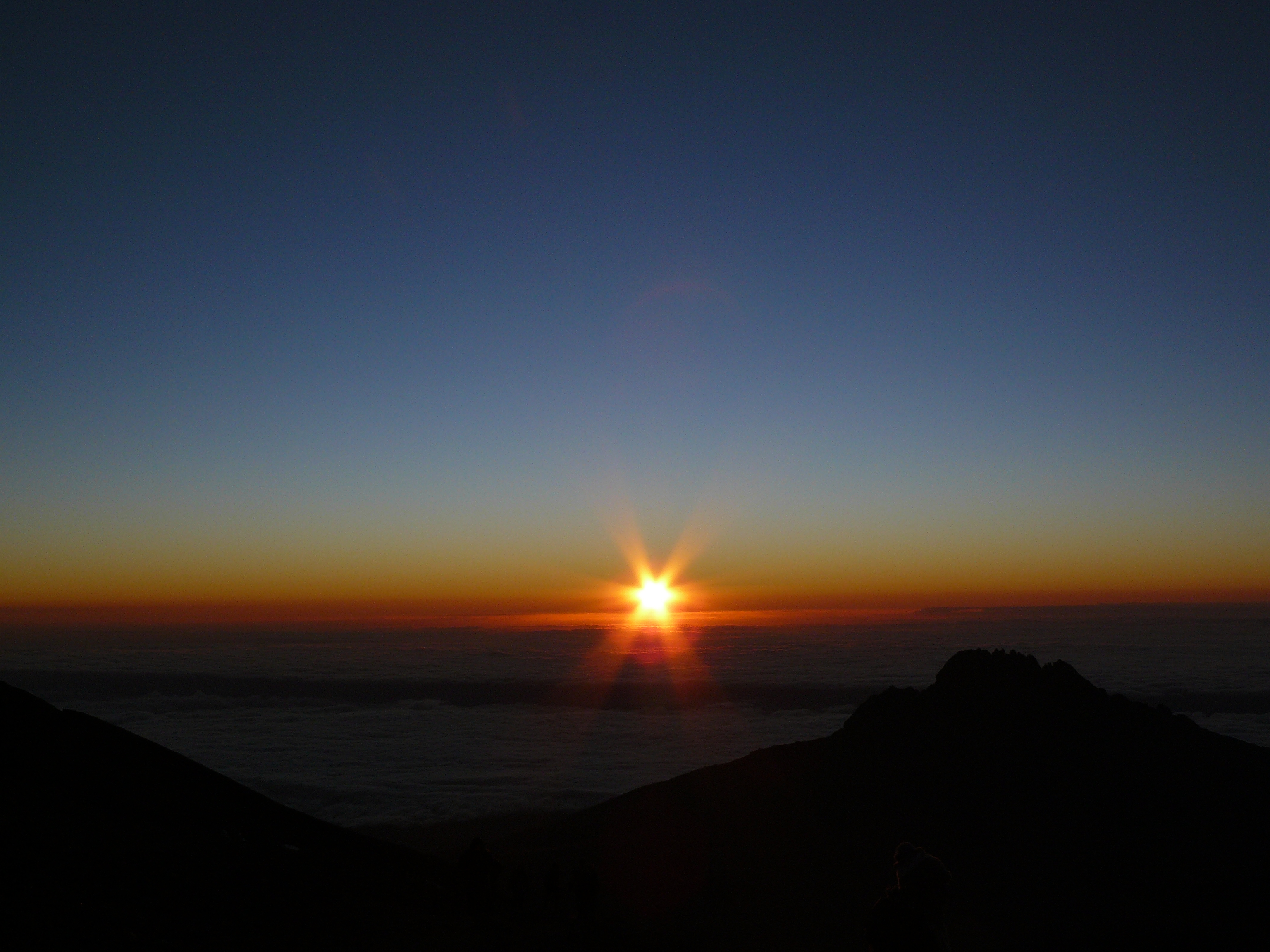 In the dark, with only our head torches lighting the way, I can hear rasping breaths all around me. It’s a crisp clear night, the stars seem very close and the moon is full. It takes a while for the group to get into ‘climbing mode’; heads down, focusing on the feet of the person in front, not looking up, down or sideways. The cold bites hard, temperatures are around -10deg C. All around I can see the head torches of other climbing groups strung out along the trail like fairy lights.