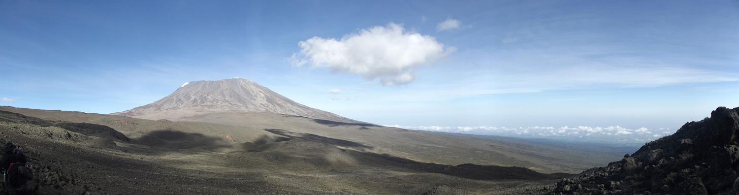 Day five dawns; we have a long day ahead of us, we need to reach base camp, at Kibo Huts, as early as possible in order to ‘rest up’, because, just before midnight tonight, we will set off for the summit. After a relatively short, undulating walk across moorland, we have a long haul across the ‘saddle’, the flat, barren, desolate area between Mawenzi and the Kibo crater. The path to the summit is clearly visible and, for many of the group, it appears terrifyingly vertical… reality starts to set in. The last hour of the walk is a relentless slog as oxygen deprivation for a number of the group really kicks in.