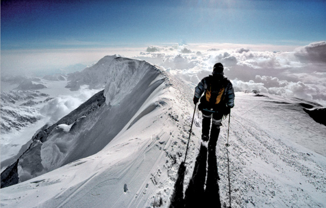 Though Denali is only a bit higher than the more accessible Kilimanjaro, the summit of Africa, the temperature and lower pressure closer to the poles make this a very different endeavour. No singing porters, no warm water to wash your face in the morning and no hot meals with popcorn unless you make them yourself. You need good knowledge of crevasse rescue, winter-camping and ice-climbing techniques. You definitely need to be in excellent physical and mental shape if you want to have a good shot at summiting and returning with all fingers and toes attached to your limbs.