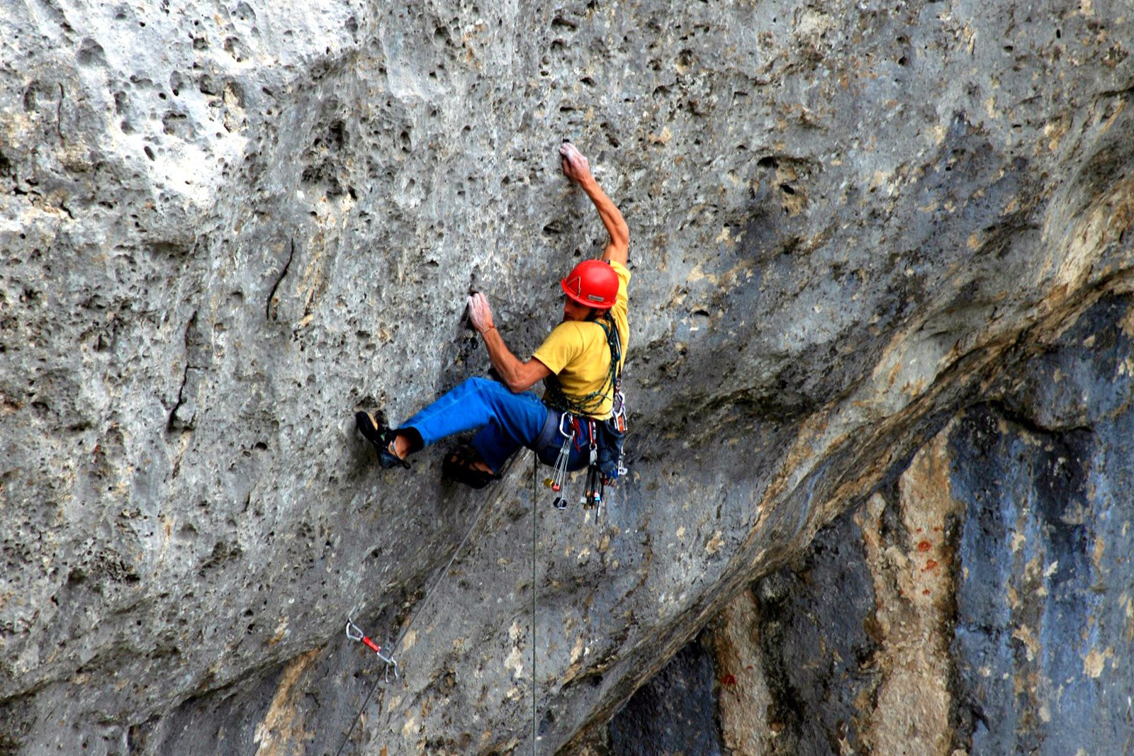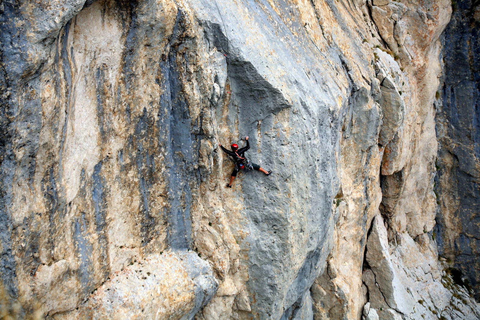That same evening Fiorino hands me a hand drill and a few expansion bolts saying “what the fuck are you doing man, drill a few holes, put anchors in there and stop being a freak“. Of course he was right too. A few days later, hanging from that nice traditional orange bolt, which I had desperately hammered upside-down in a blind hole last time, I hand-drill my first 8mm hole half a meter above. “But why hand-drilling, for Christ’s sake?” you may ask. Making concessions, especially to yourself, takes time. I will understand this later, as well.