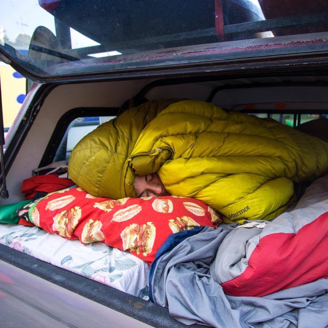 This is where I sit. With my job titles being “freelance writer” and “professional freestyle whitewater kayaker”, it is no surprise that I am not living the van life of luxury and glamour. There is no vase of white daisies in my home-on-wheels. Instead, my van life consists of a 2003 Toyota Tacoma Prerunner (a fancy way of saying I drive a 2-wheel drive car that looks like a truck) with a topper over the truck bed. Now, I am not trying to gain pity, but it turns out that buying a $100 topper over Craigslist at night when you can’t really see it, isn’t the smartest idea! 24 fiberglass patches, 3 tubes of caulking gel, 2 bottles of epoxy, and four days of work later, and the topper is ALMOST waterproof! I have built a bed in the truck bed out of plywood and 2x4s, where I sleep on two Thermarest pads, with two zero degree sleeping bags (the topper has the insulation quality of a plastic bag).