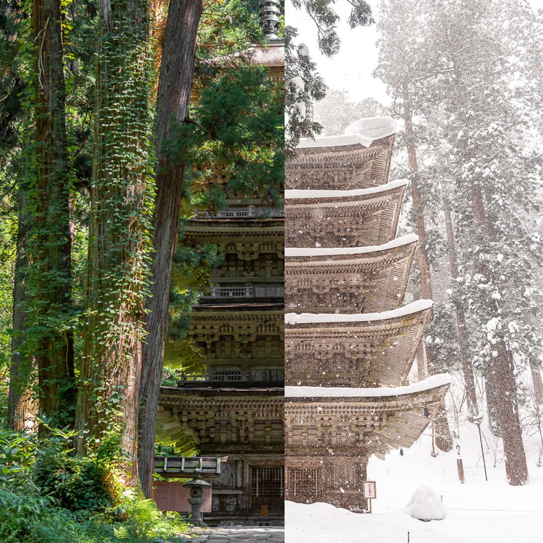 The five-story Pagoda of Mt. Haguro, a Japanese national treasure, is a must-see, and arguably the best-known feature of Mt. Haguro and the Tohoku region. The Pagoda is an architectural masterpiece that is as breathtaking in the summer as it is in the winter. A magical experience amongst the 400-year-old cedar trees. Registered as a three-star spot in the Michelin Green Guide Japan, it is a place that leaves a lasting mark on all those that have the chance to share a moment in its presence.