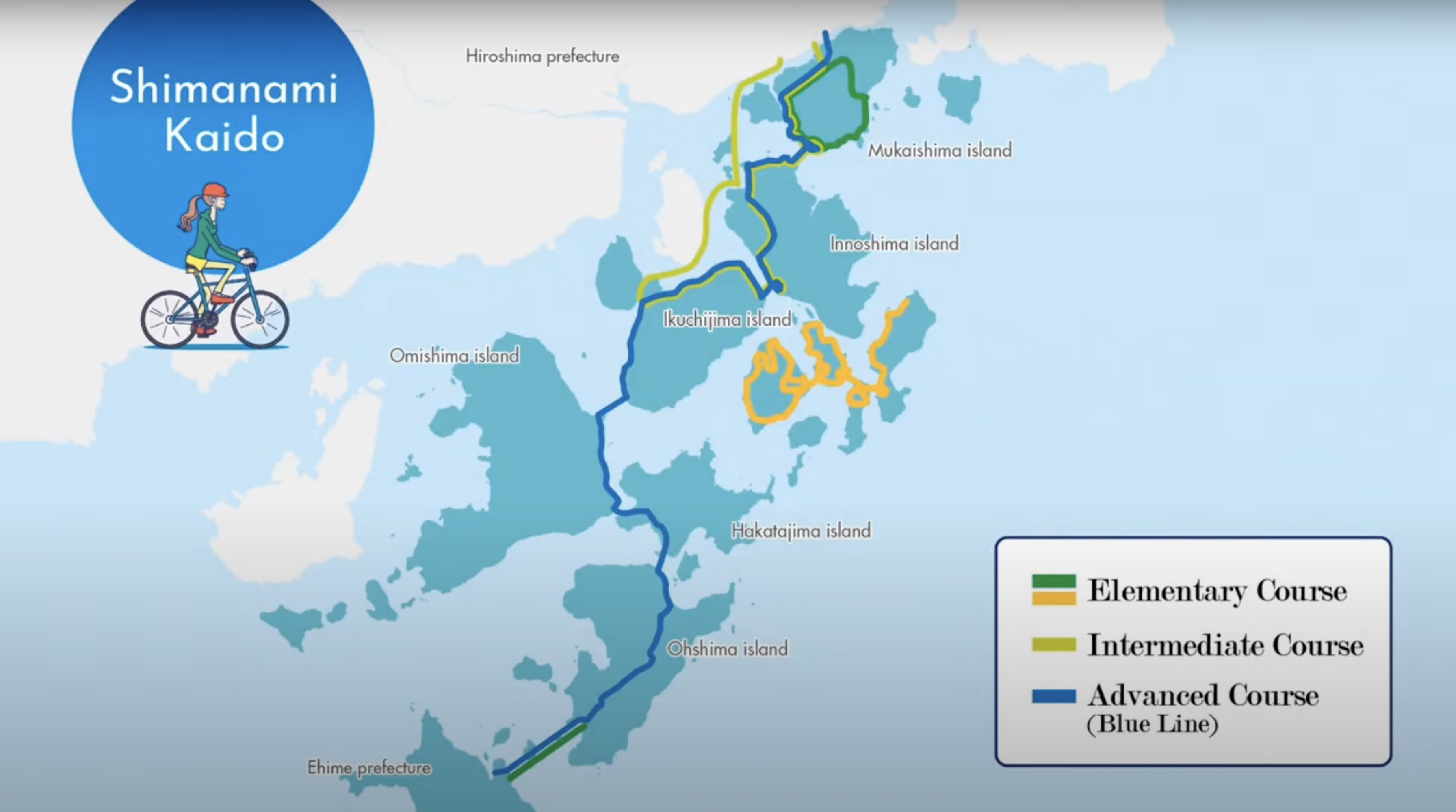 A wonderfully mild climate makes it the perfect place to consider touring the region on a bike, and the Shimanami Kaido (しまなみ海道, Shimanami Kaidō) route is the best place to start. You will actually begin the route on Japan's main island of Honshu, but you will quickly cross onto six other islands before finishing your adventure in Imabari City.