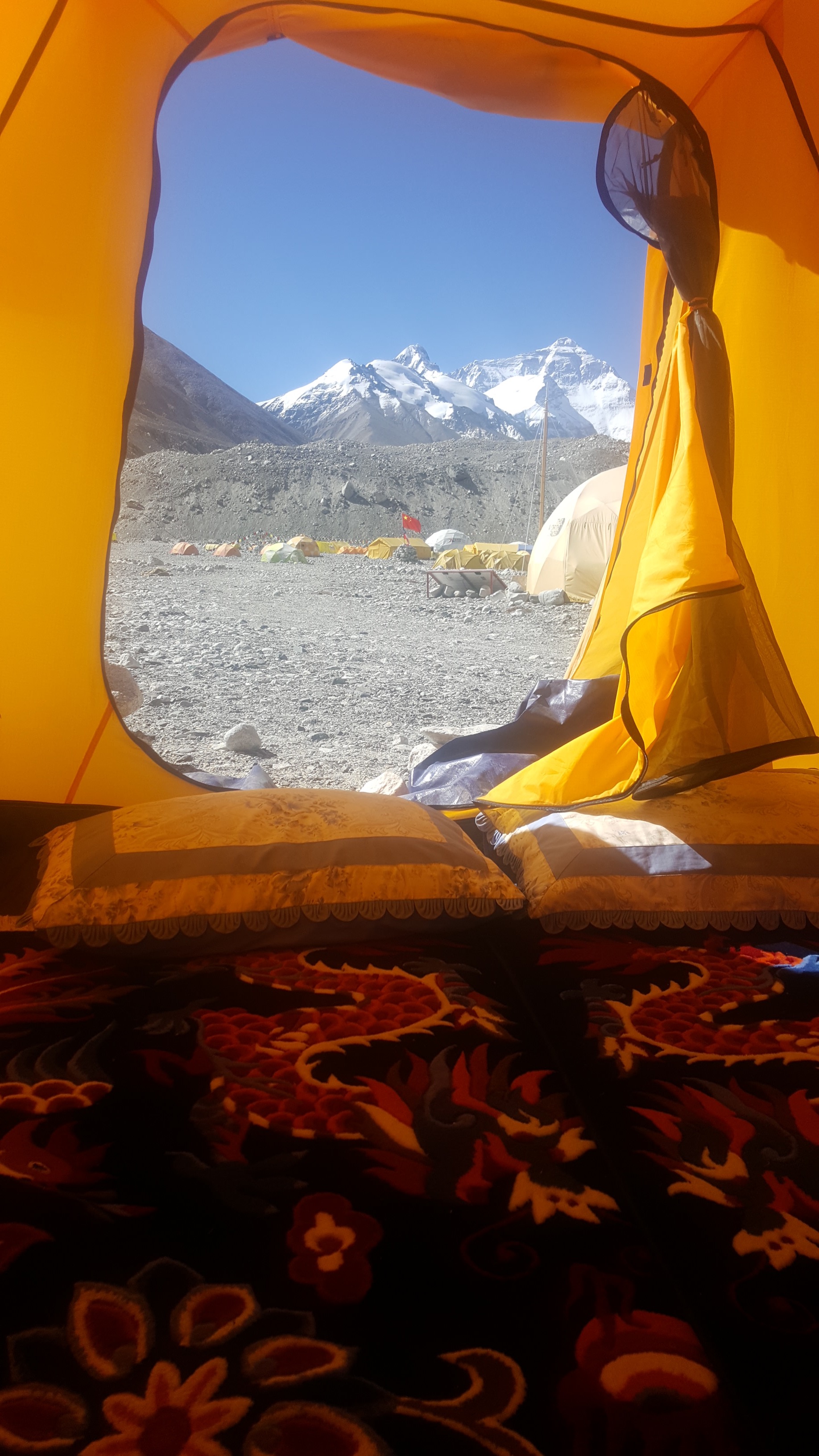 When you are sitting at 7,000 meters (22,965 ft) in the dining tent of the climbing Sherpa Team, sharing a tea with them, getting inspired by their positive energy, it is just a fantastic feeling. For some, it was the first time on Everest, as it was for myself. For others, it is like attending the same race, year after year. There is a mixture of respect and excitement around being upon this mountain again. It is the home of the Goddess Chomolungma, no climbing Sherpa will start such an expedition without the traditional Puja - a Buddhist ceremony in which the Sherpa will thank the mountain for letting them pass and come back safely. However, it is also a way in which to apologise for the tracks made on her. To observe them, preparing the tea, setting up the tents, discussing the next days, was as if I was sitting in a tea-room somewhere in a mountain resort, they almost seem to be in communion with the mountain. Some are young, some are older. Whilst they all share the same aim, they also share the same pain. But no one shows it. Their movements are fluid and natural - You might almost forget that you are so high in the altitude... But what is the hard truth?