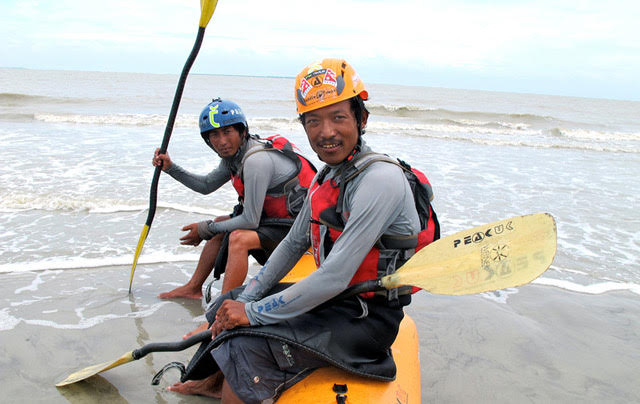 We reached the ocean, but we had to start thinking about how we got ourselves, and our kayaks, back to Nepal. We are two Nepali guys, and the border guards are asking many questions. It’s hard to explain how we have come all the way from Everest!