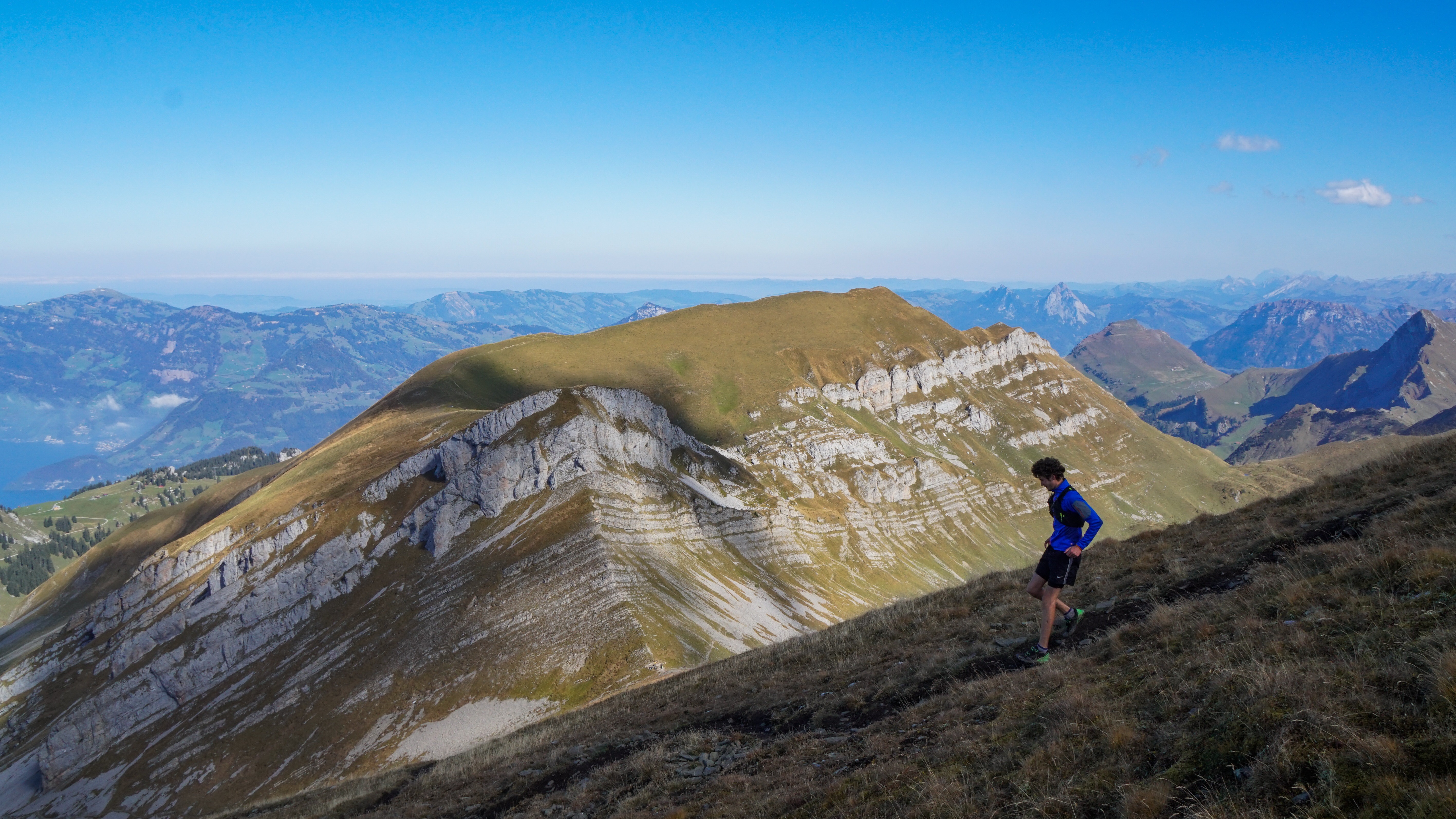 Time: Always a tricky question, but it's certainly possible to run the entire ridge in 5 hours with a good tempo. Distance: Departing from Oberrickenbach, and arriving in Emmentten, you will have travelling 27km for 2581m D+. Location: All within 10km of the famous town of Lucerne. To get there, it's best to use the train from Lucerne main train station to Wolfenschiessen (15min), then take a bus to Oberrikenbach alte Post (5min). Difficulty: Two specific passages require extra attention. First of all, between Jochlistock (2070m) and Gandispitz (1996m). The edge is tapered on this last portion and the path is narrow, it must be approached with caution if the ground is wet. The descent of the Oberbauenstock between the passage of the Schwiren (2018m) and Gross Schilt (1882m) also deserves a some restraint, but it is equipped with chains to support you. The two passages are rated T4. Good for: Trail runners of all abilities. The route isn't too technical and can even be combined with other routes in the area to suit your ability further.
