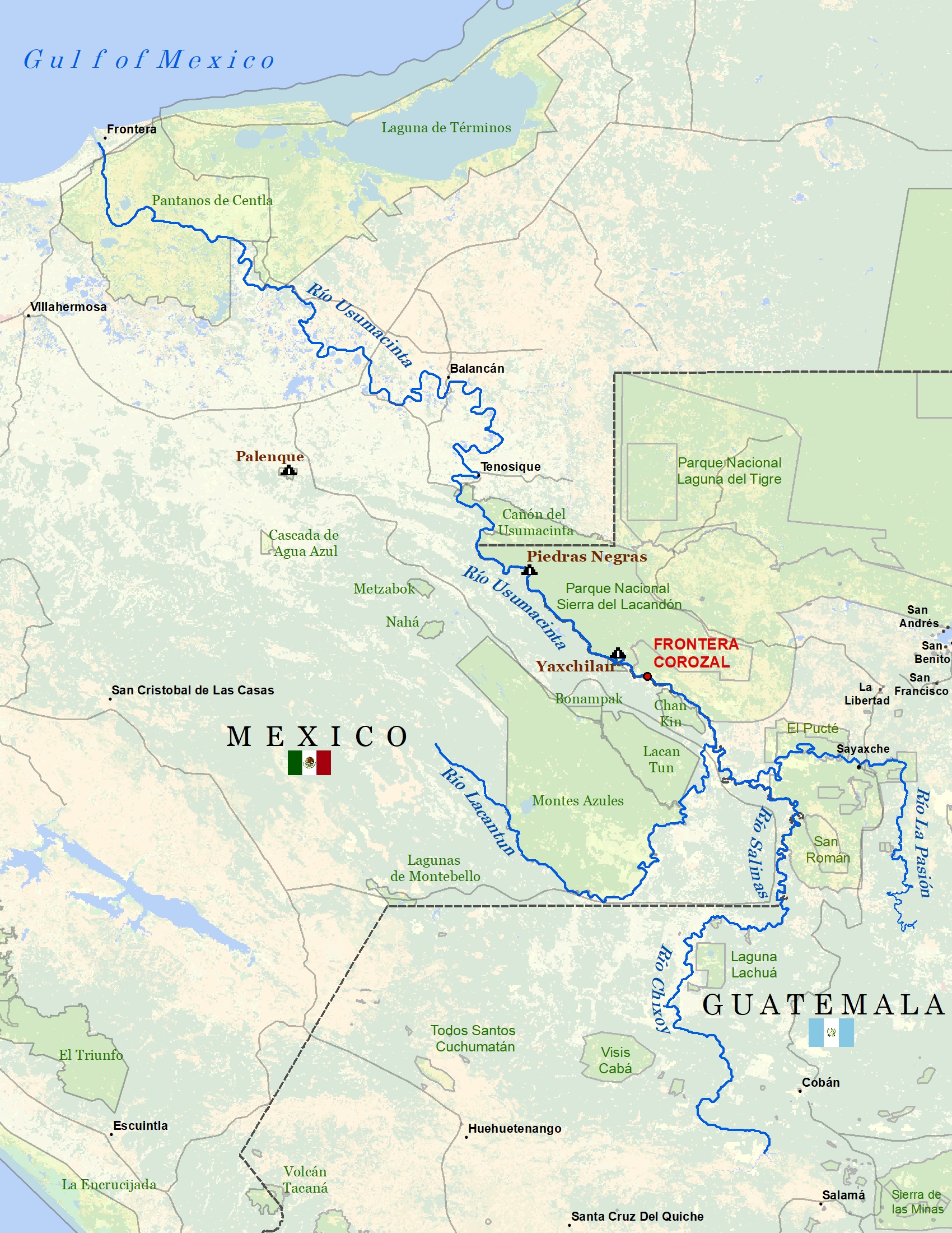 The Usumacinta rises in the western Guatemala highlands, and the mountains and high ground in southern Chiapas, Mexico, forming part of their common boundary. This aquatic highway that supported the rise of Mayan civilization then flows north-northwest until it reaches the Gulf of Mexico and one of the richest fisheries in the world.