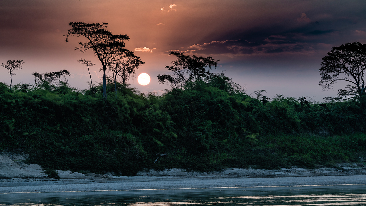 We breathe freely on the water while the jungle seems impossibly dense. Shimmering curtains of strangling, suffocating vines line both sides of the river. The diversity of canopy layers is striking. A flowering tree springs forth while mysterious scents waft across the river.