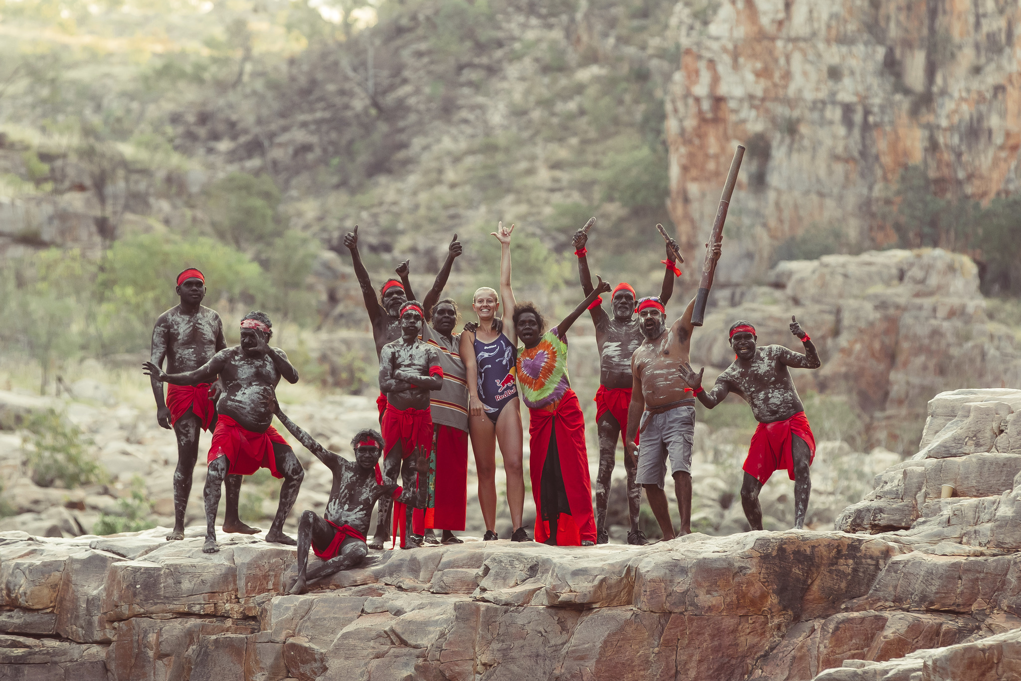 Out of respect for aboriginal peoples, Red Bull's production thoughtfully connected with a Jawoyn cultural advisor to guide the crew on their journey to some of the most dynamic cliff diving spots on the planet. Stripped down, Rainbow Dive plays out much like an episode of Adrenaline Addiction, where a group of untrained daredevils throw caution to the wind as they seek out extreme cliff spots in locations like Hawaii and Arizona. However, Rainbow Dive is enriched with layers of cultural significance as Rhiannan explores parts of her homeland that are not accessible to most of the population and listens to stories that have been passed down through oral tradition for thousands of years like the mythical story of the Rainbow Serpent, for whom the film is named after. "We feel very lucky. There's not many people that get to experience this, and you're welcoming us here, and it's definitely a privilege," Rhiannan shares.