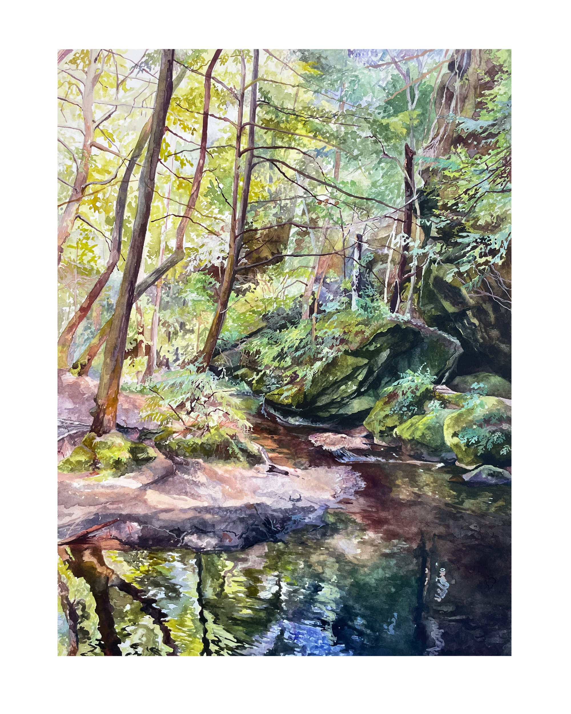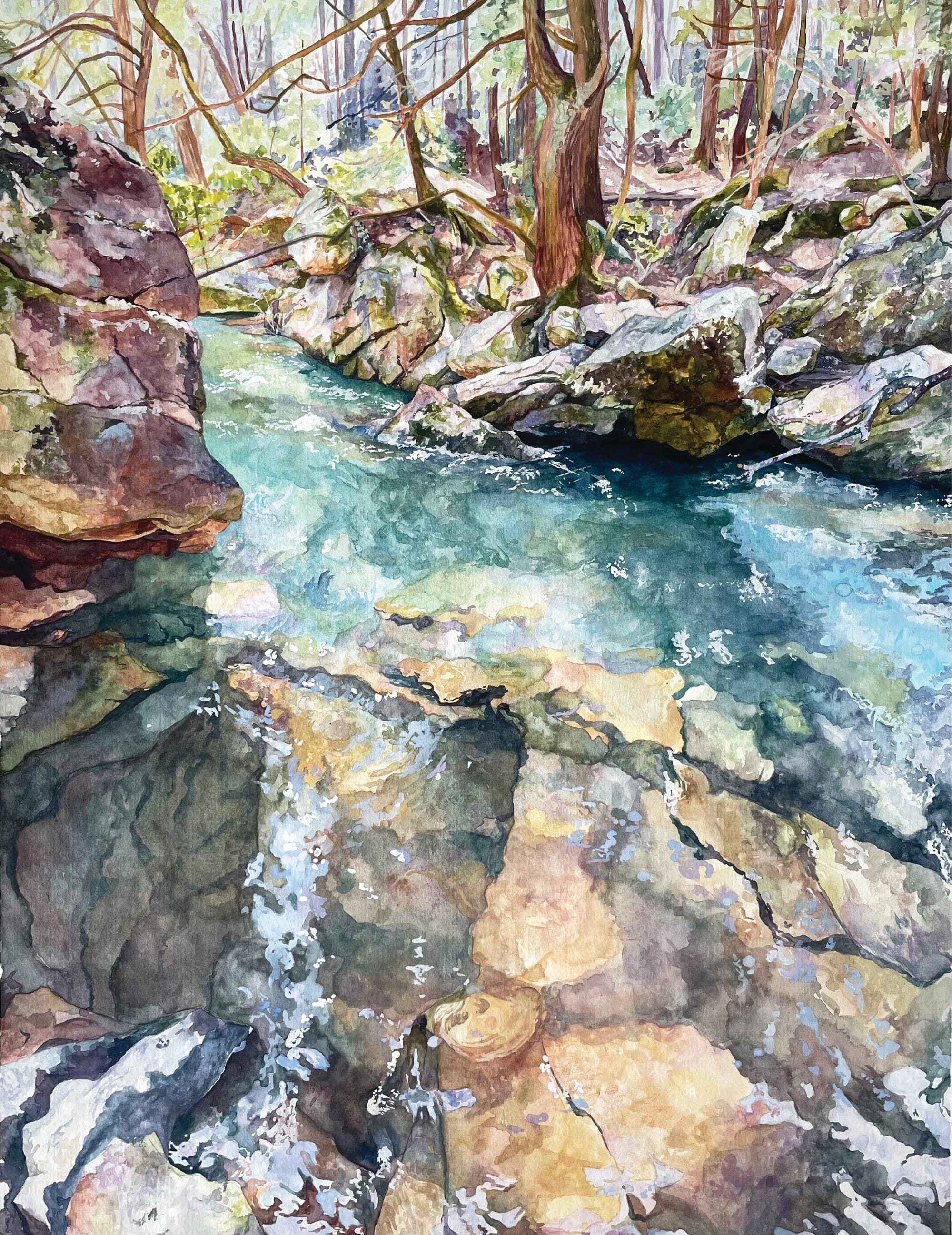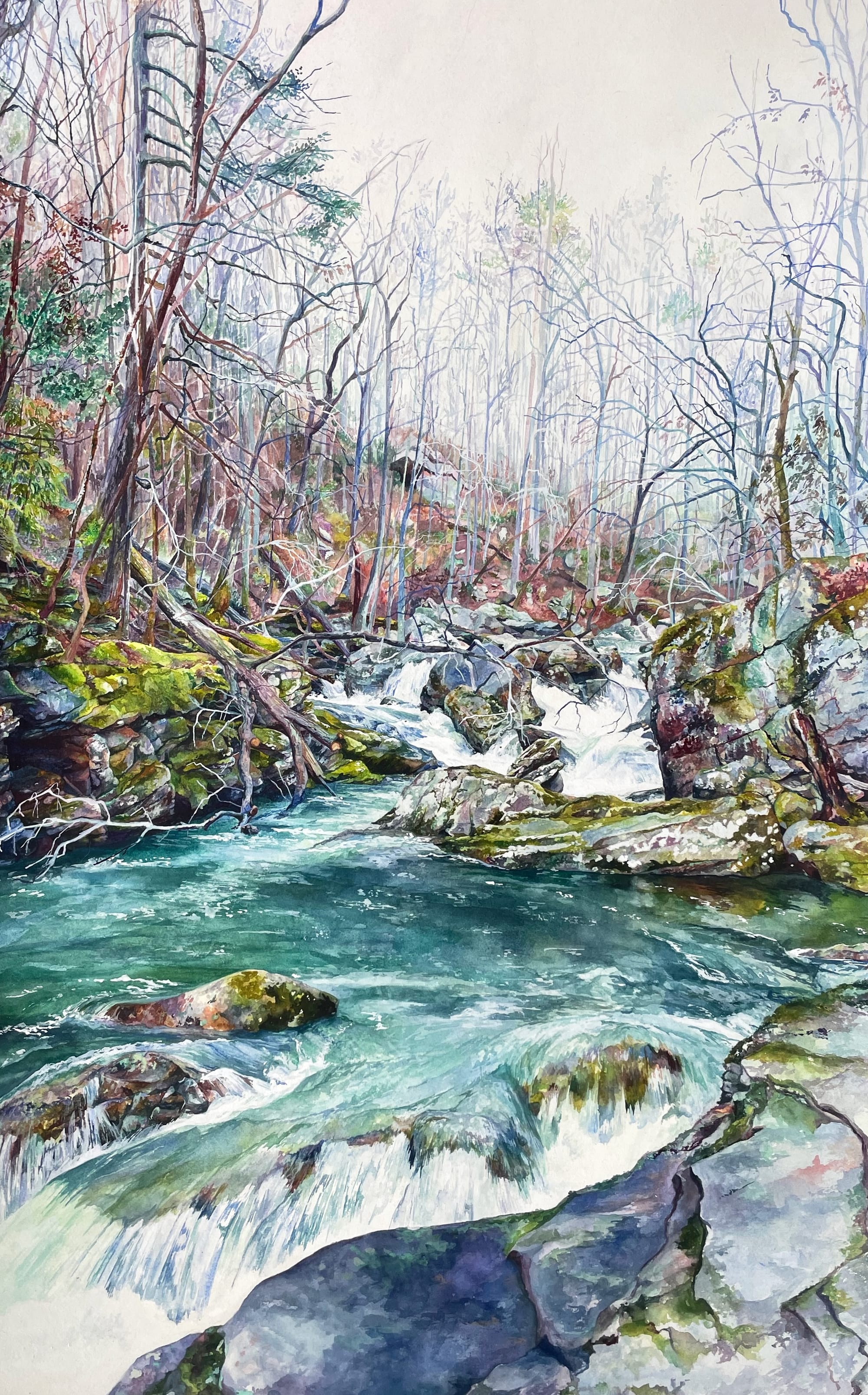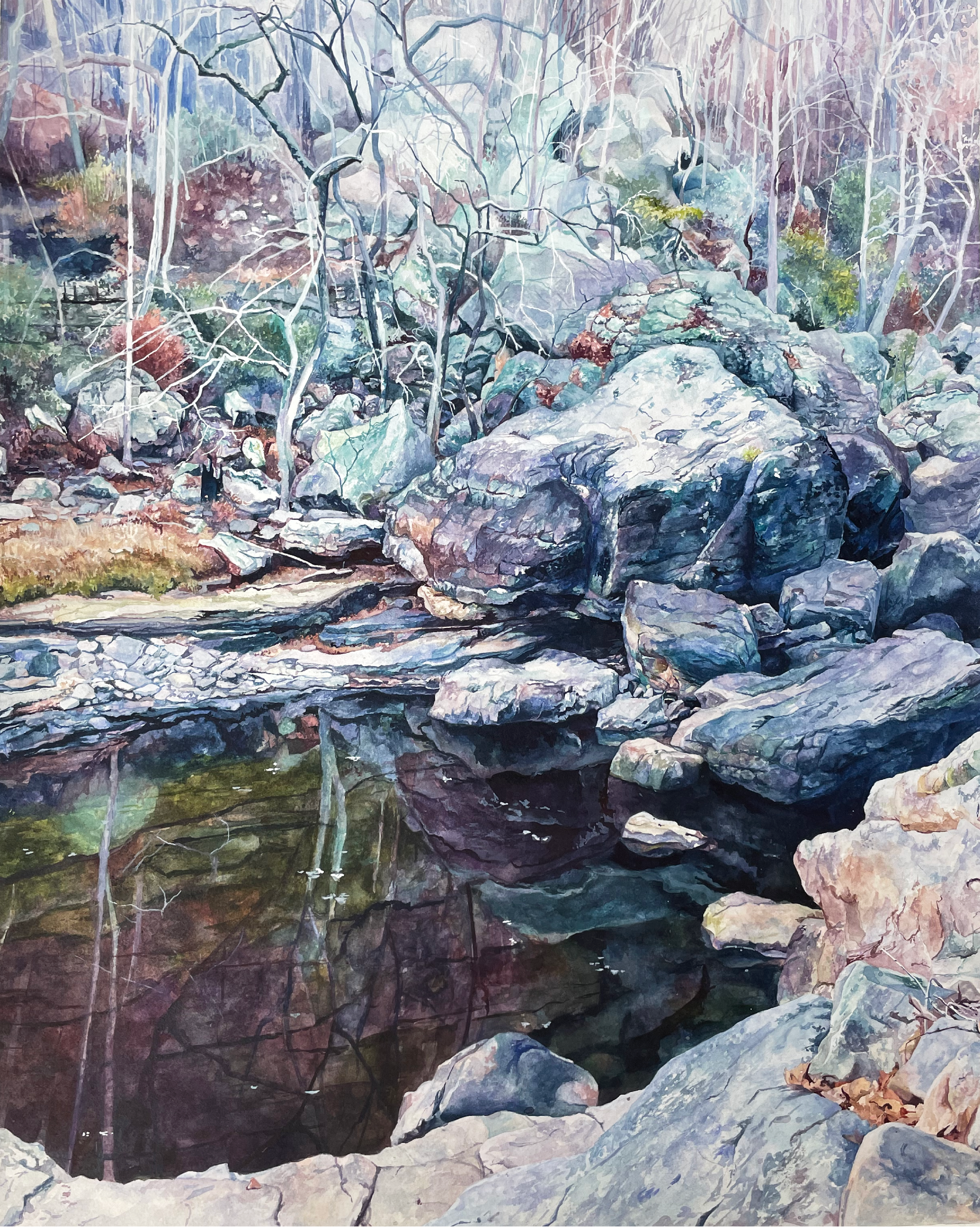 It’s also her favorite way to depict the outdoor world. “I love the transparency,” she explained. “With watercolor, the white paper under the pigment is what makes it glow. It gives it a more lifelike quality. The whole thing is filled with white, instead of having to add highlights with white pigment.”