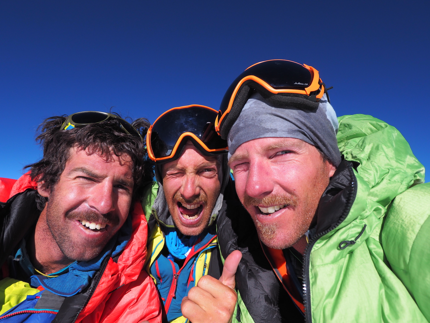 On day six, the Gang climbed two more technical pitches of WI4/5, and then trudged up through the final snow slopes to reach the summit at 3:00 p.m. “We were crying like small children. We were finished. I felt free. There were lots of things inside me which were fighting each other. But we were super happy. You could see the entire earth curving on each side,” Millerioux says. The team enjoyed their success for twenty minutes and then began the descent.