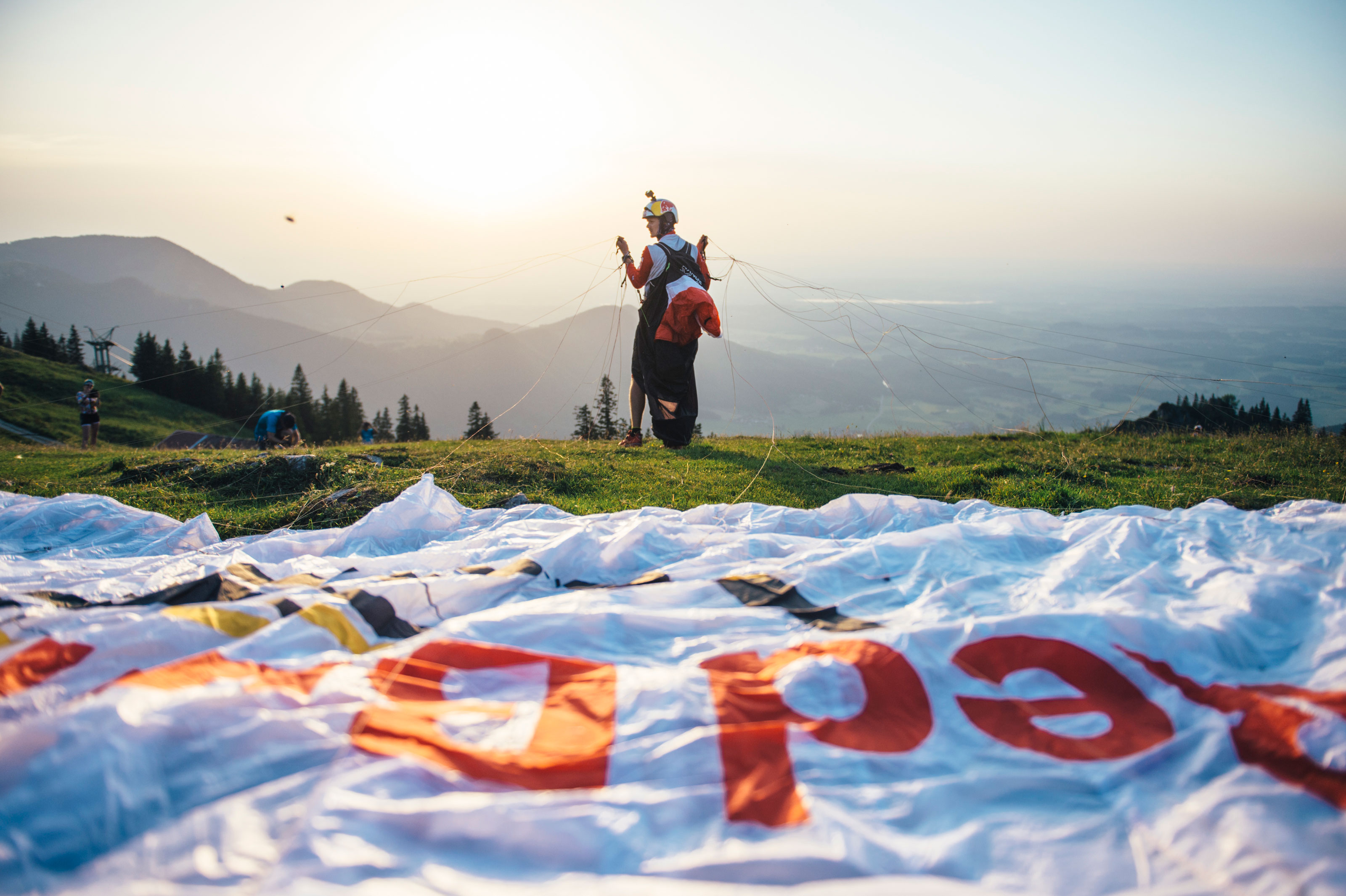 I took stock of my surroundings. Throngs of screaming fans, the Red Bull filming helicopter buzzing loudly overhead, all the athletes laying out their gliders and preparing to fly. I was so excited and pumped up I felt like screaming, but I tried to keep a calm outer demeanor.