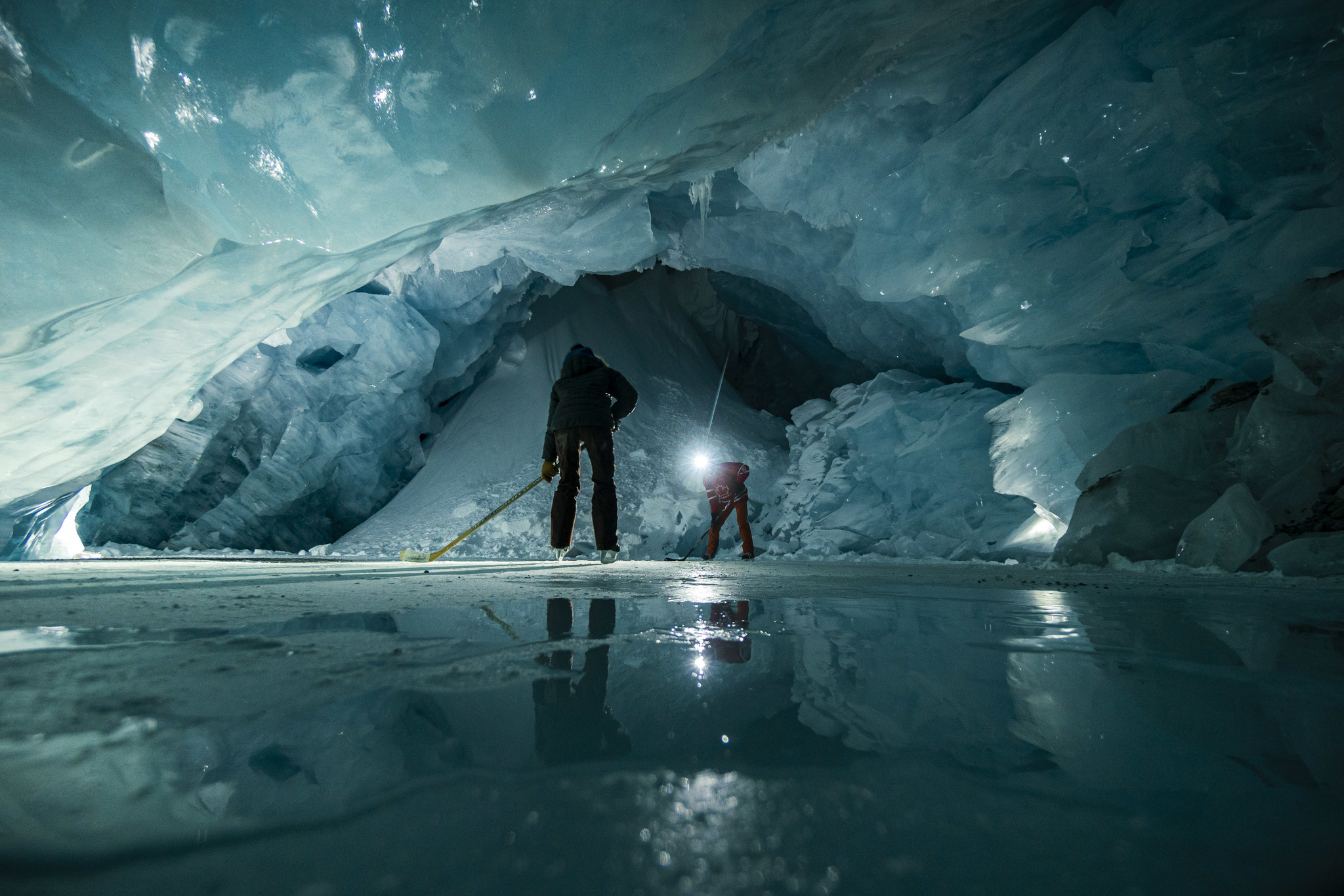 The local lakes were now completely snow-covered and Paul was already missing the wild skating season. Luckily, Paul had discovered a rare phenomenon on one of his adventures to a hidden ice cave inside of a glacier. The world’s greatest skating rink. A perfect skating rink in the bottom of a massive ice cave.