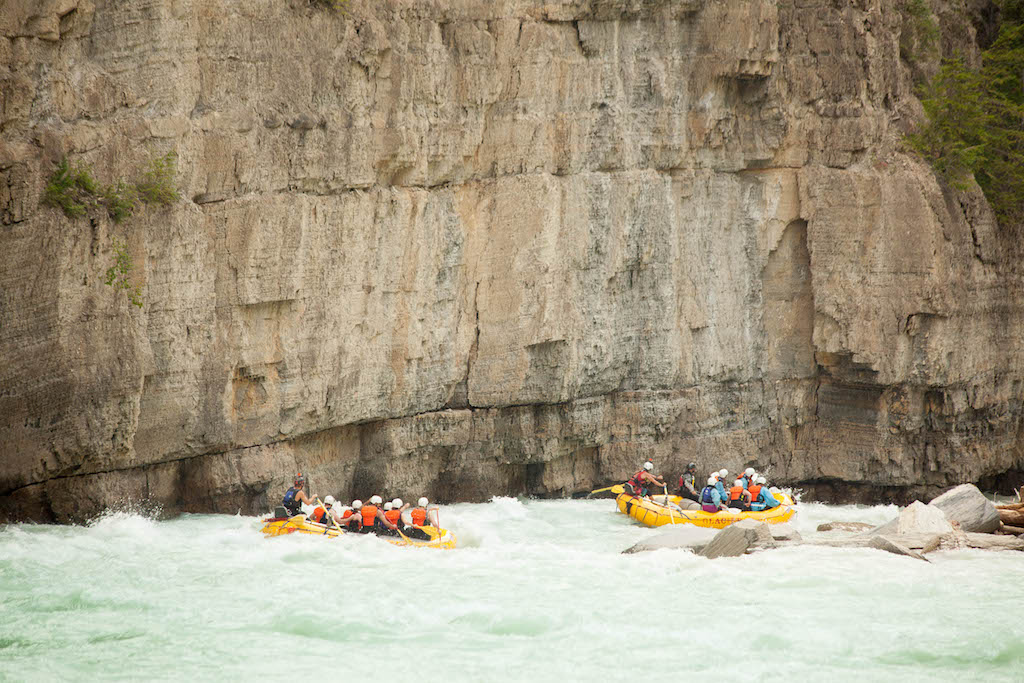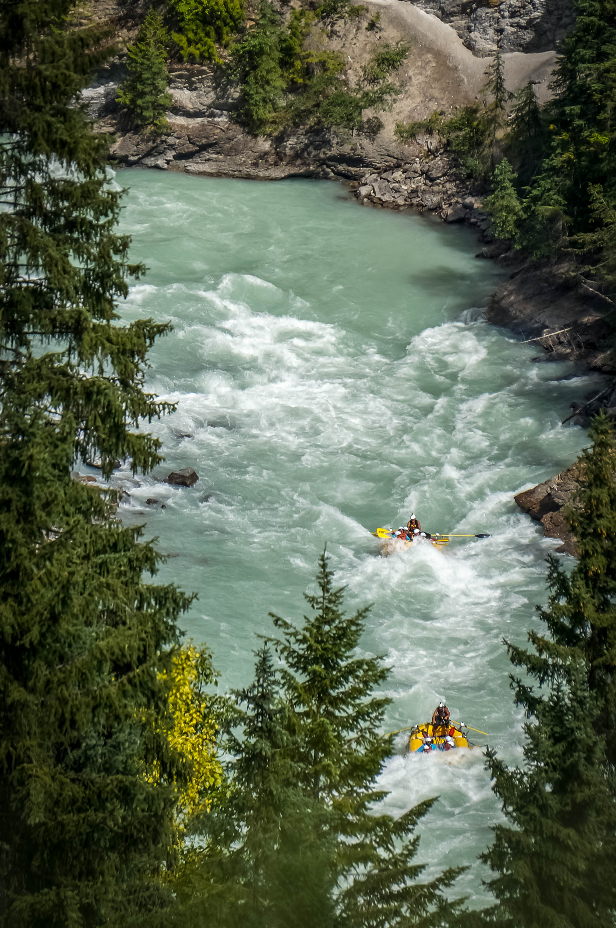 Though the river was too high to try it that day, Glacier Raft Company also runs heli-rafting adventures. The Kicking Horse River has three sections: the lower, middle and upper. The lower portion is only accessible by helicopter, and has the biggest white water around, including four kilometers of unrelenting Class 4 rapids. On the heli-rafting trips, participants crowd into a chopper and descend into the depths of the lower Kicking Horse.