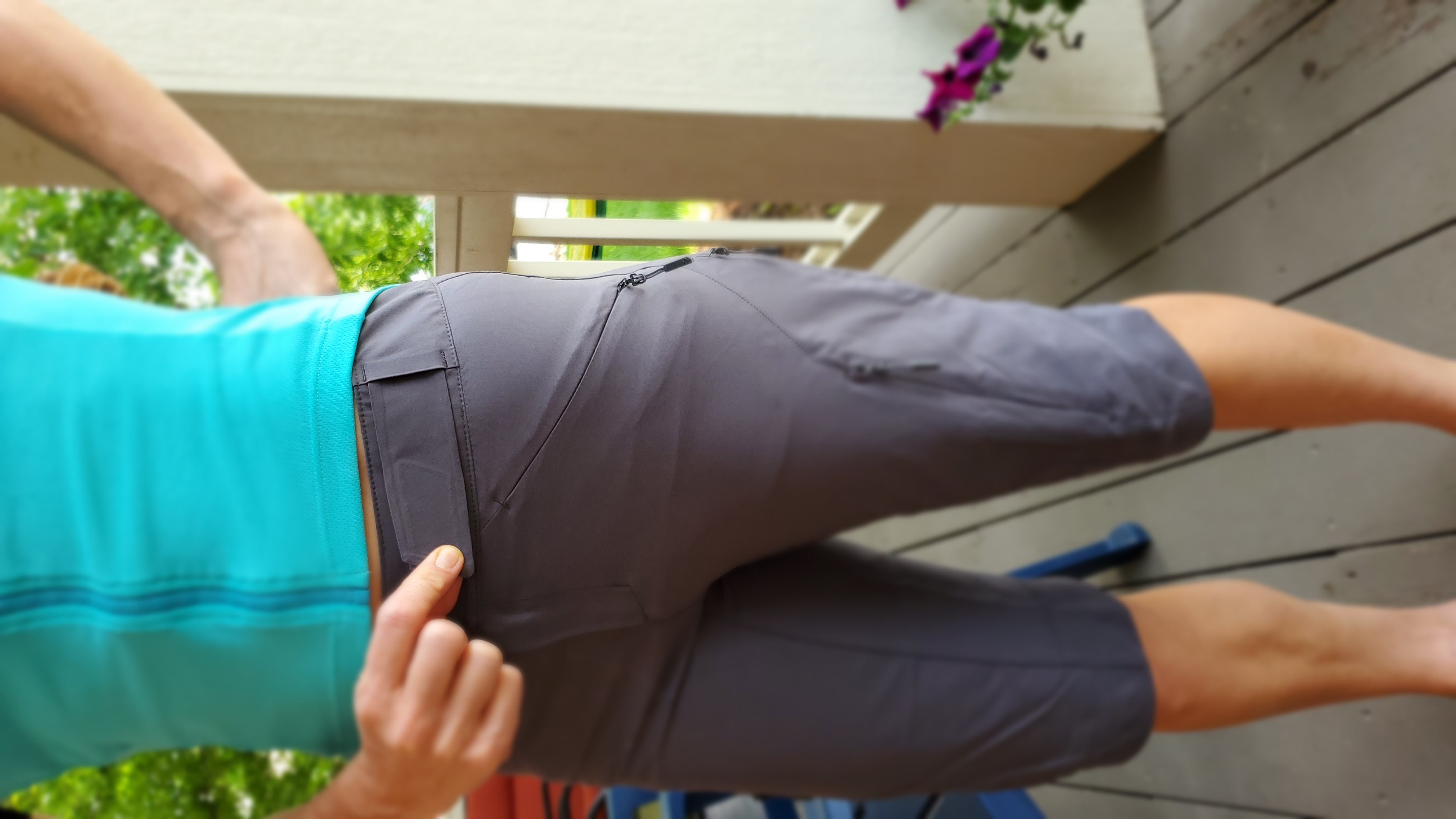 The fit of these shorts is my favorite part. They maintain the non-lycra look of a good mountain bike short without looking frumpy and overly loose. The band at the top of the shorts has a stretchy Velcro tab you can pull to cinch the shorts so you don’t have a gap in the back as your shorts wrap around your “wattage cottage”. The shorts are narrow, slimming and without bulging seams and pockets. All of the zippers on the shorts are integrated below the material of the shorts making a really smooth look.