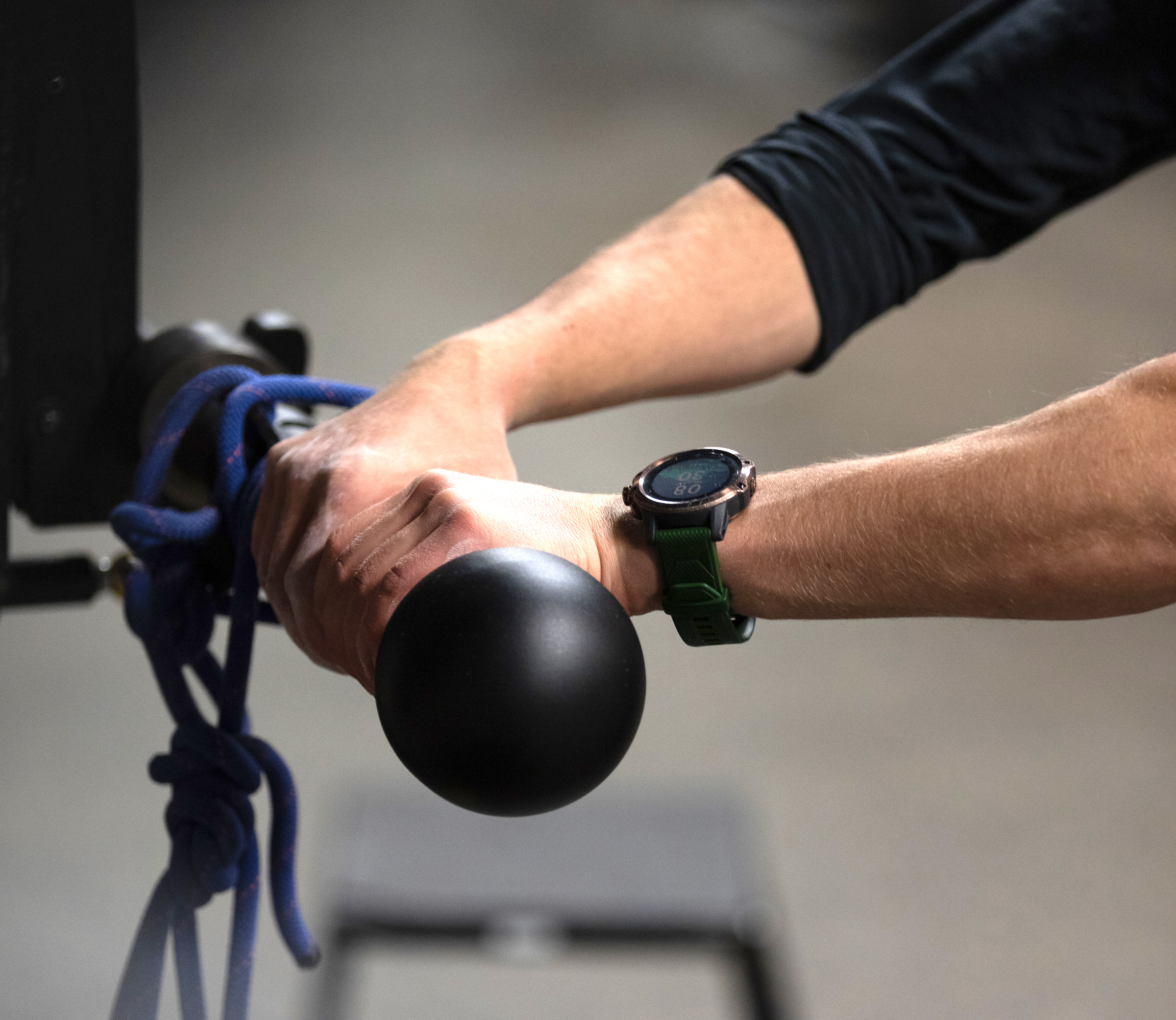 The Gripedo also offers an excellent replacement for a standing forearm rope workout by sliding the back of the device over the end of a weight rack or holding it freely. The only frustration I encountered with this application was that the hole drilled through one of the fins was not centered and allowed for the rope to slip off the edge of the fin constantly.