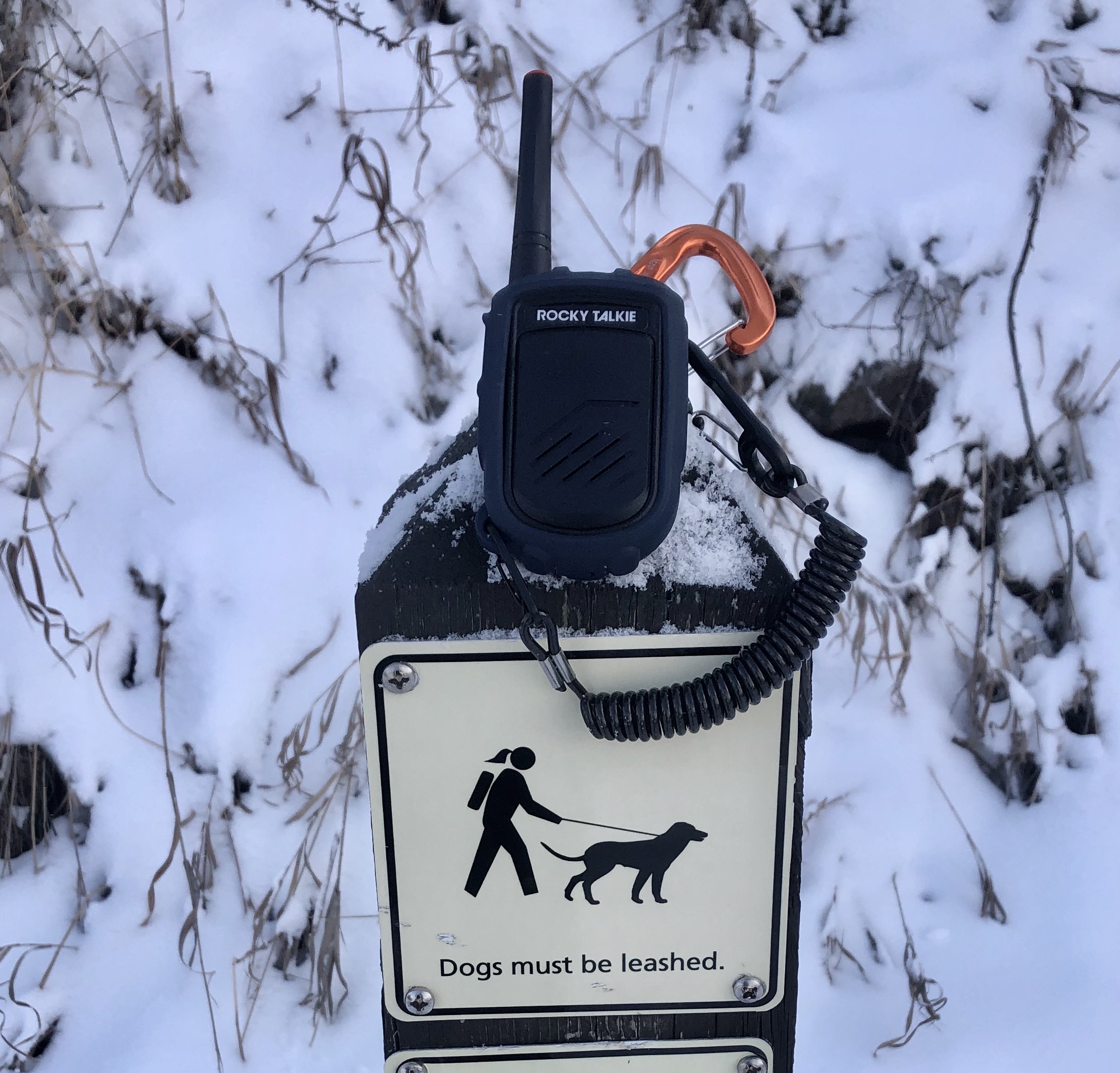 Rocky Talkie FRS Radio ($90.00 each) – On testing day, it was -2 degrees Fahrenheit. Perfect test conditions with only one problem; no one would go outside with me. In my world, that is not uncommon. I often venture out alone. I always let someone know my planned whereabouts and expected return time. However, today, I could stay in contact with “Homebase” while venturing into the sidecountry near my home in the Colorado foothills. In our premontane neighborhood, cell service is spotty, even close to town, so on most occasions; I am at least partially disconnected from help if I were to need it. Not today, though! We set our radios on channel 128, clipped my Rocky Talkie to the front of my pack with the rugged Mammut® Ultralight carabiner, and I set out fully bundled for the bitter cold winter conditions. The first half-mile, the signal was strong, and communication with my partner back at Homebase was crystal clear. At three-quarters of a mile, no problem either. At this time, he was cozy by the fire inside our cement and steel condo.