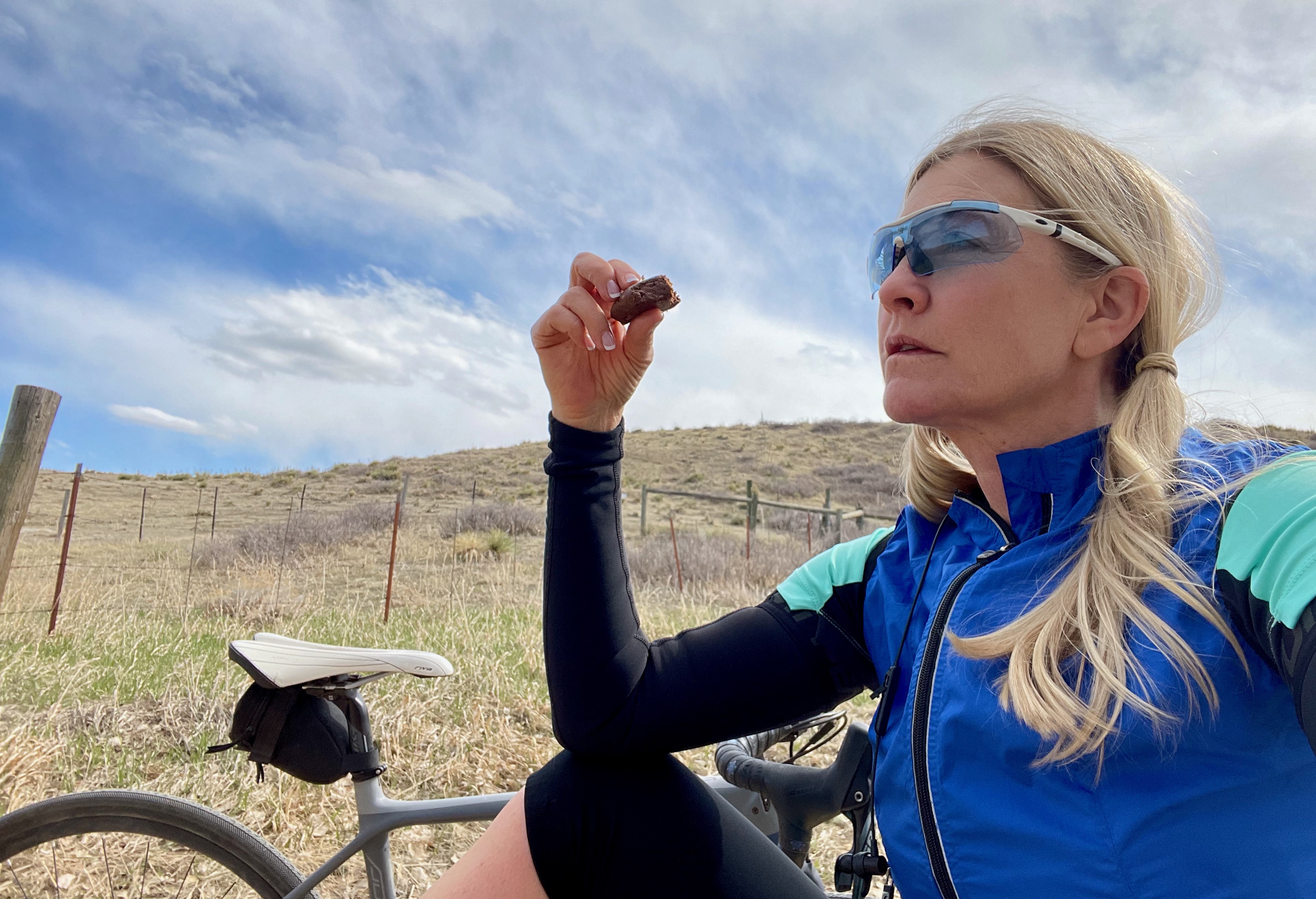 Ok, all this nutrition gets me pretty excited, but how does it taste? I was also worried about nausea which is sometimes an issue for me with nutrition bars and other sports supplements. I decided to start slow. I took one of the impressively sized, 128-gram bars and cut it into quarters, put it in a baggie, popped it into my running belt, and set out for my weekend eight-miler. About halfway in, I stopped and ate a quarter of the bar. It tasted pretty good! It looks like chocolate, but it has a unique nutty-fruity-cocoa taste–like good food. There are bits of pumpkin and chia seeds as well as dried fruit that give it a nice texture. It is oily thanks to coconut oil being one of the main ingredients, but it did not melt in the heat–like so many other nutrition bars. I finished my run with good energy and a happy stomach. I ate another quarter for recovery. So far so good! The next day was a five-mile run followed by a 45-mile bike ride. Armed with my quartered Possible Bar, I set off eating a quarter about every 45 minutes. Throughout the four-hour workout, I had great energy and no nausea. After I returned to home base, I still had the energy to do a 25-minute yoga cool down.