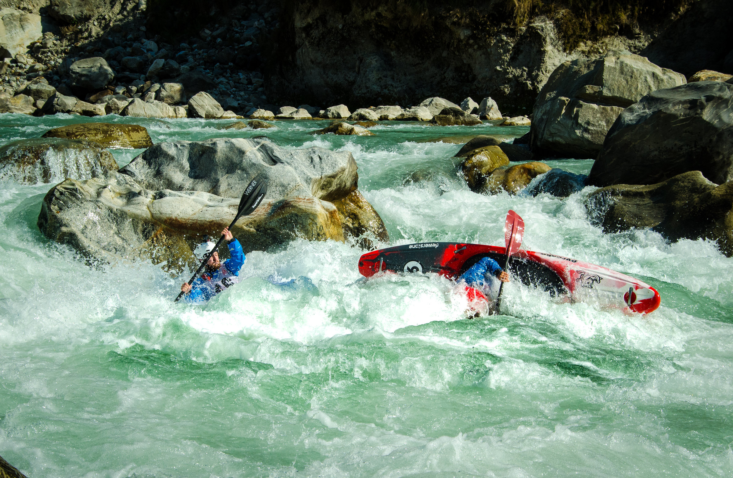 Kayaking carries greater risk than rafting simply due to the fact that the participants are in control of their own boat, rather than a trained guide. Instead, the guide is usually in their own kayak telling you how to manoeuvre from a separate craft. Industry standards recommend a ratio of one guide to every four participants for kayaking and canoeing. However, this ratio may decrease and become 1:3 or even 1:2 as the whitewater gets more challenging and consequential.