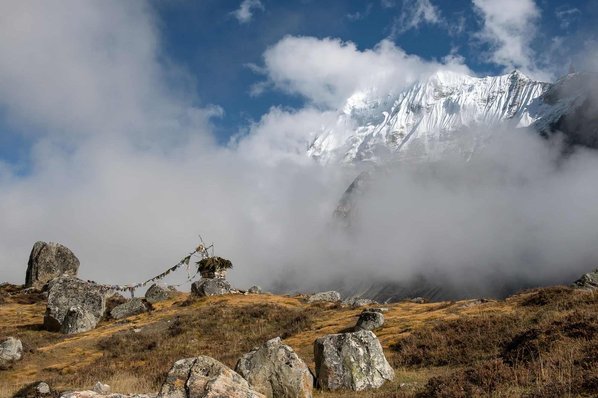 Kanchenjunga was right in front of us. The clouds, wreathing, moving, were below.