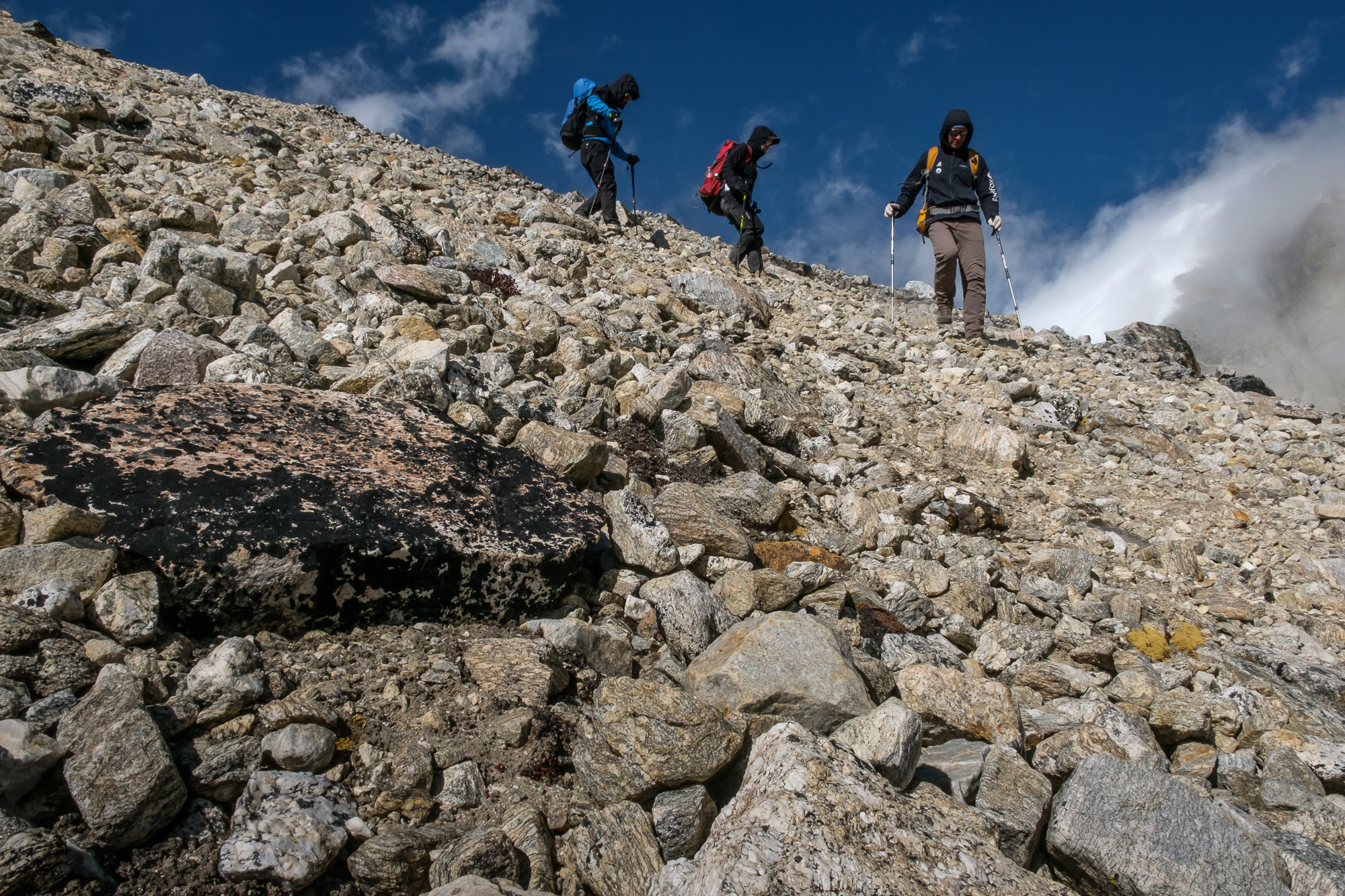 When we reached Lhonak at the elevation of 4700m, we had to pick one of three scenarios: climbing Drohma Ri, one of Kanchenjunga satellite “hills” with a summit of approximately 6000m, reaching Kanchenjunga base camp, or staying at Lhonak. If altitude was causing too much discomfort, you could also go back down.