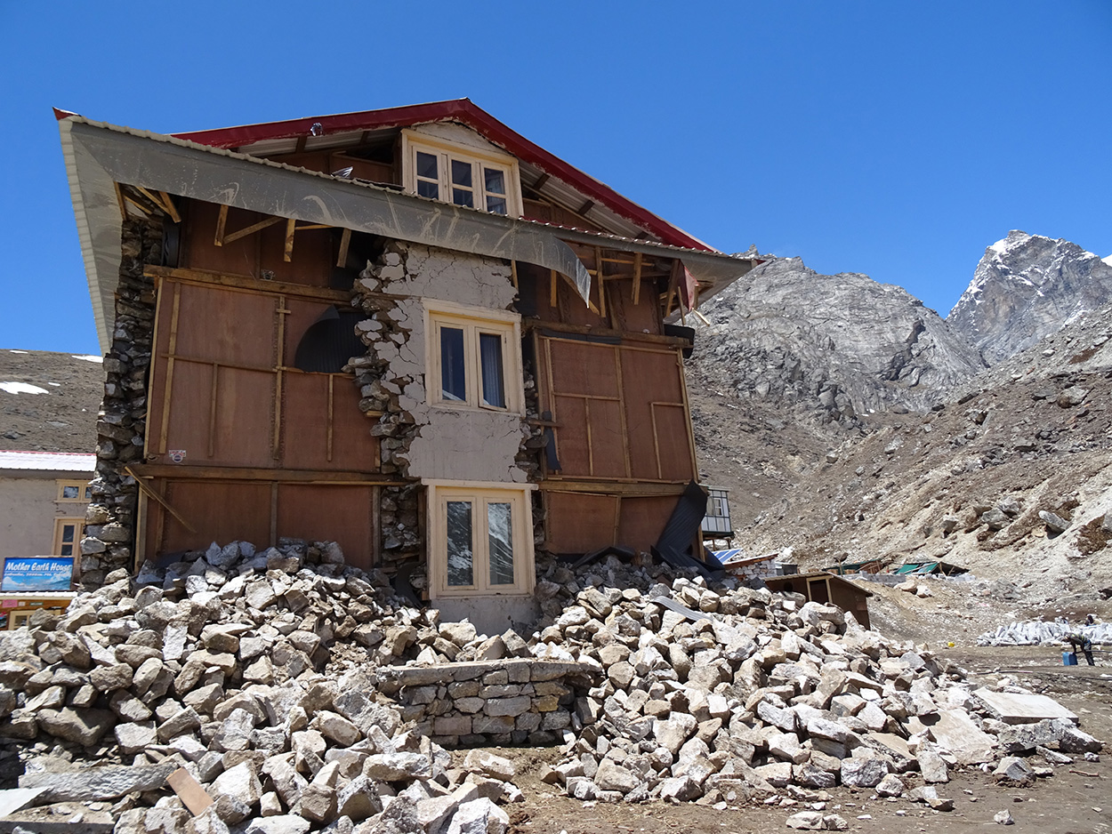 My feelings are mixed and complex as always. This feels like the mission that I always knew I was going to do. Ever since leaving Base Camp I couldn’t enter a building without noting its exits and potential shelter points. The local markets down narrow ramshackle brick lanes in Namche Bazaar were reduced to a narrow strip of rubble. I loved those markets—the noise, the spices, the smells, and the women in bright saris squatting amidst their produce grinning their gap toothed, paan stained smiles at me whilst trying to marry me off to their daughters. The amazing thing was that the country had a spirit that very quickly gets under your skin. The people were friendly and welcoming, and everywhere I looked, I witnessed examples of human courage beyond imagination. They were sticking together through what has been the most devastating earthquake in a hundred years.