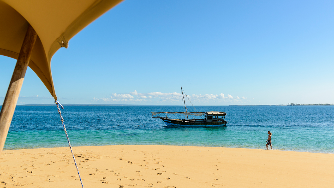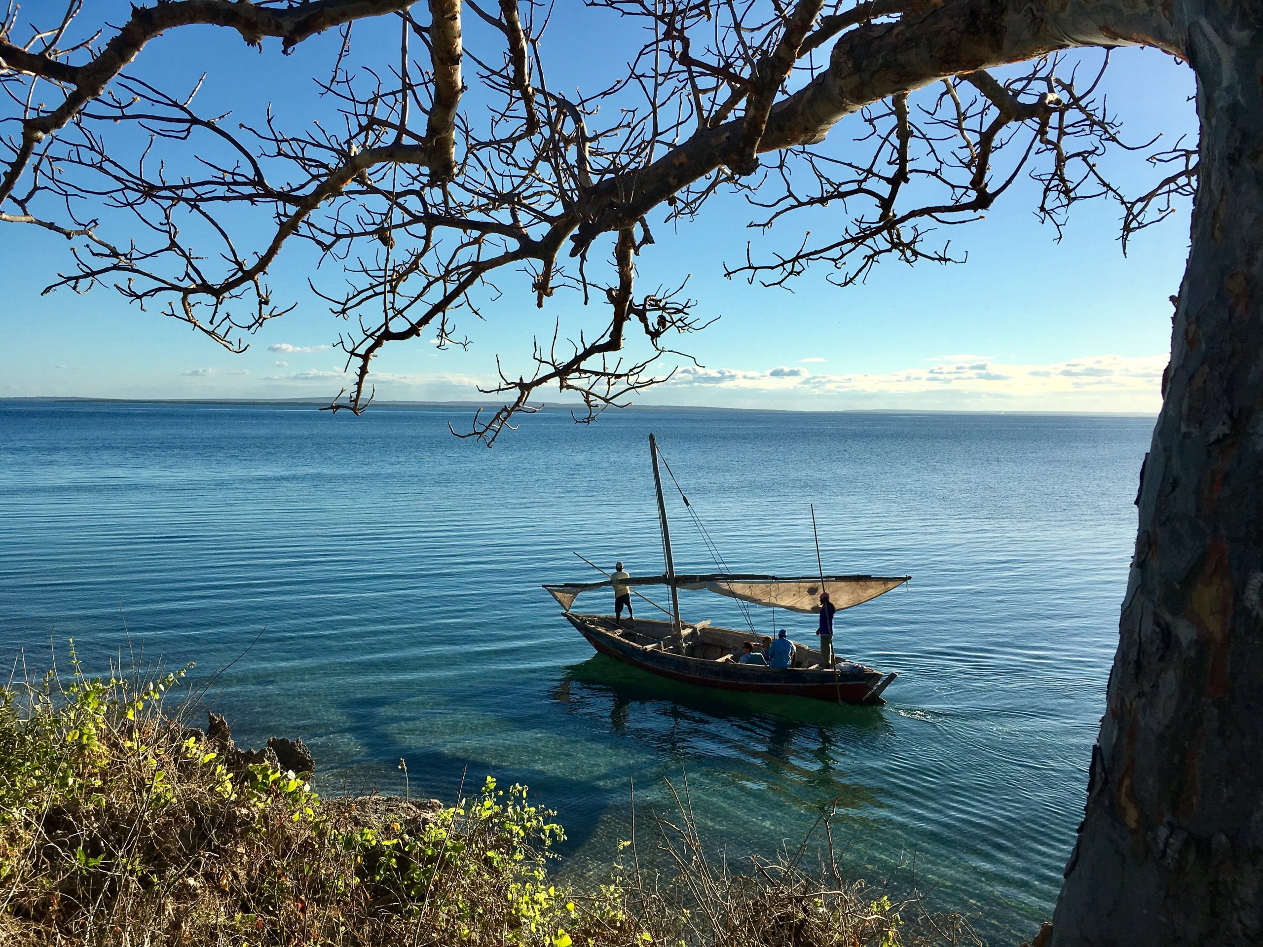 A traditional dhow sails past Quilálea Island. Photo by Azura Quilálea Private Island.