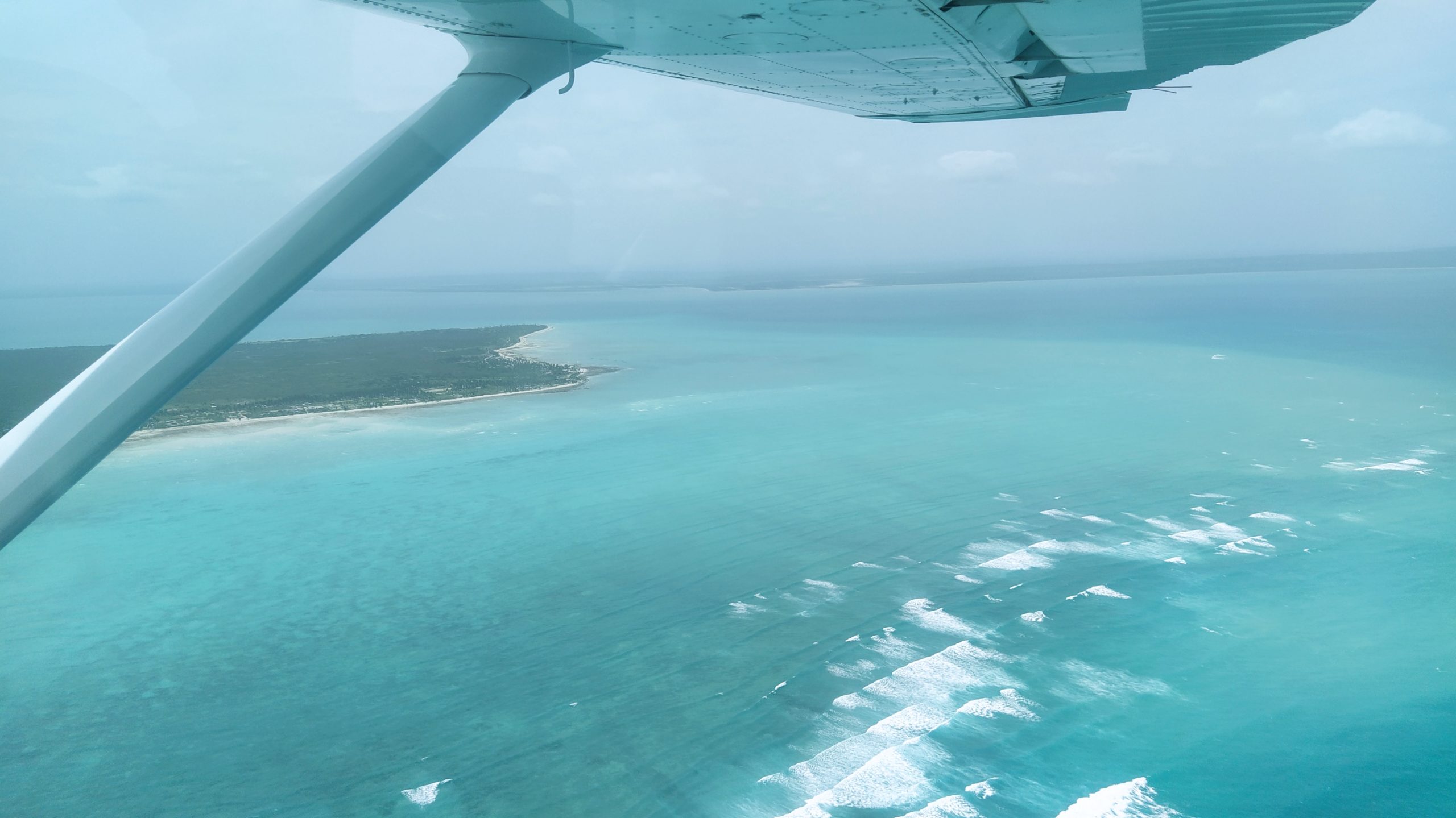 Flying over the spectacular coastline of northern Mozambique, heading to Medjumbe Island in the Quirimbas National Park
