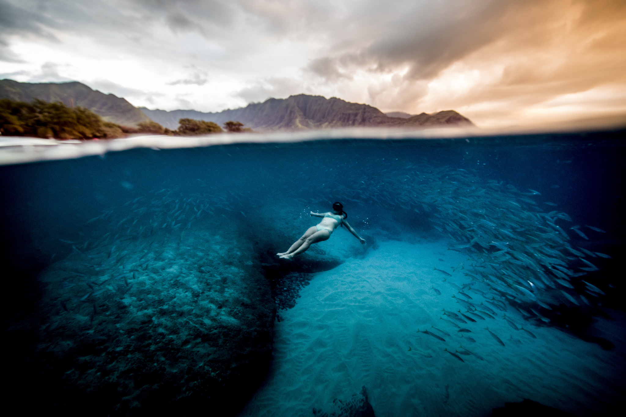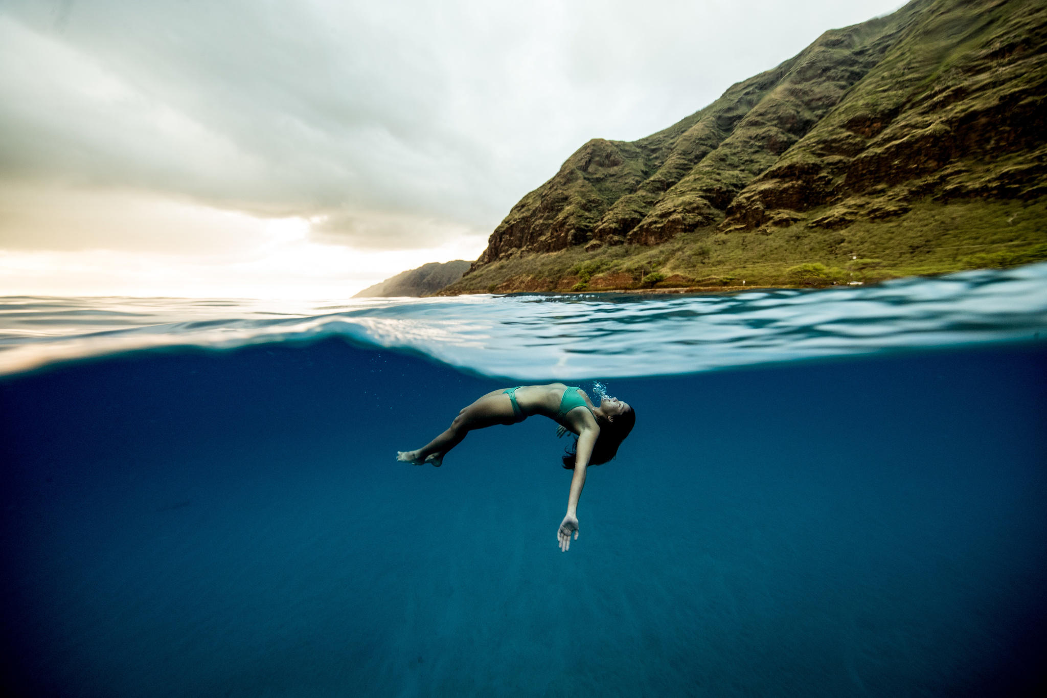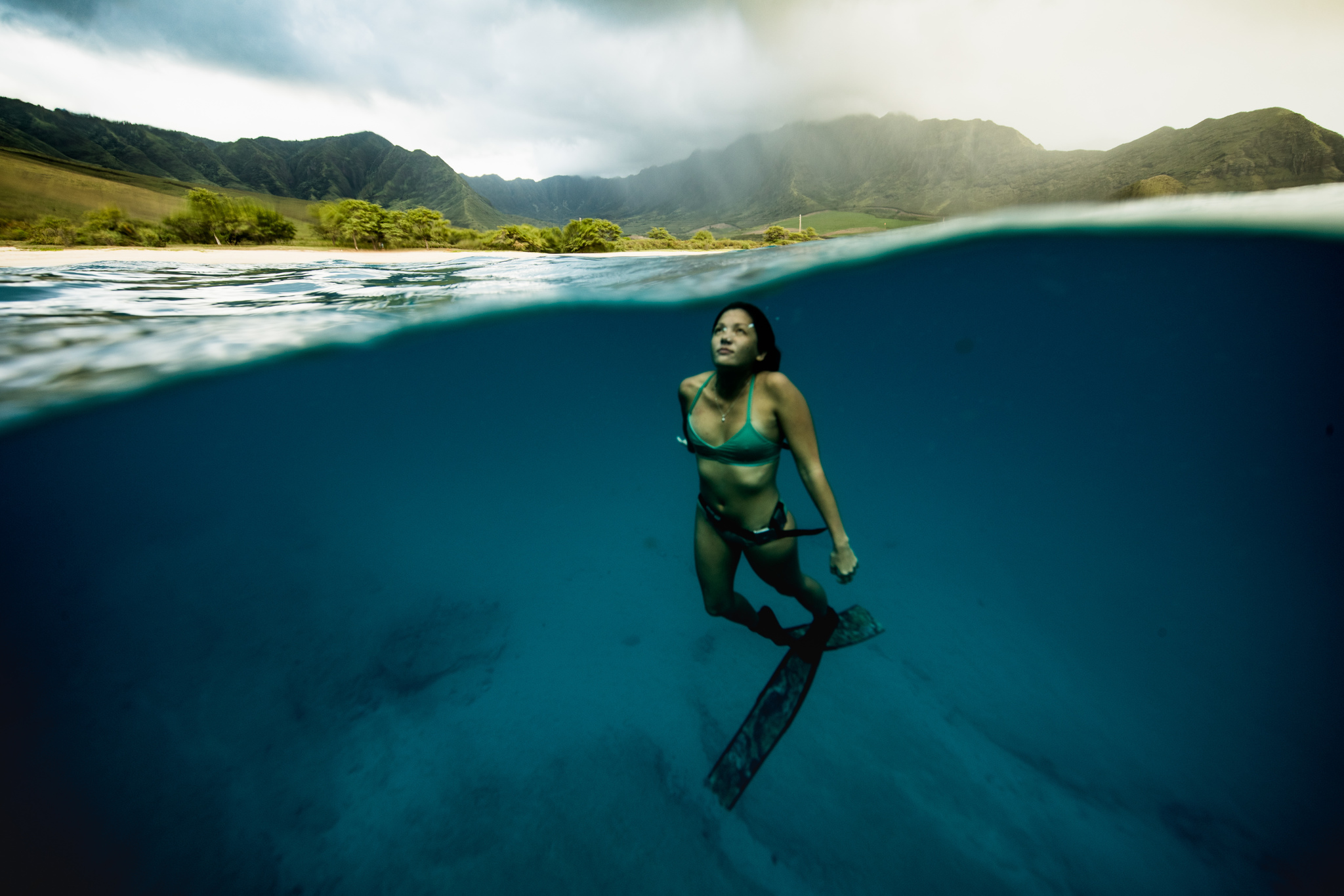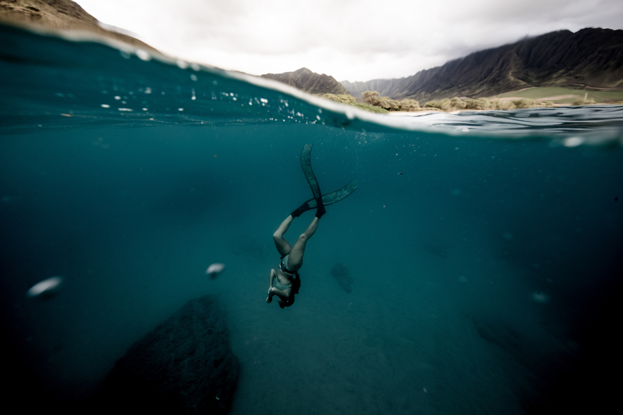 KW: I can feel the pressure starting to squeeze me on my way down. The light just becomes so beautiful, dancing on the surface from far away while diving. The ocean is full of peacefulness for me. It is the perfect place to forget the clamour of the world. I can often hear the sounds of whales in the background and just the many sounds of the ocean...I feel like I have to go with the flow underwater. Like I’m not in control, I’m at the mercy of the sea, so I need to be responsive, alert and open to change. But all of that only makes me feel free and happy.