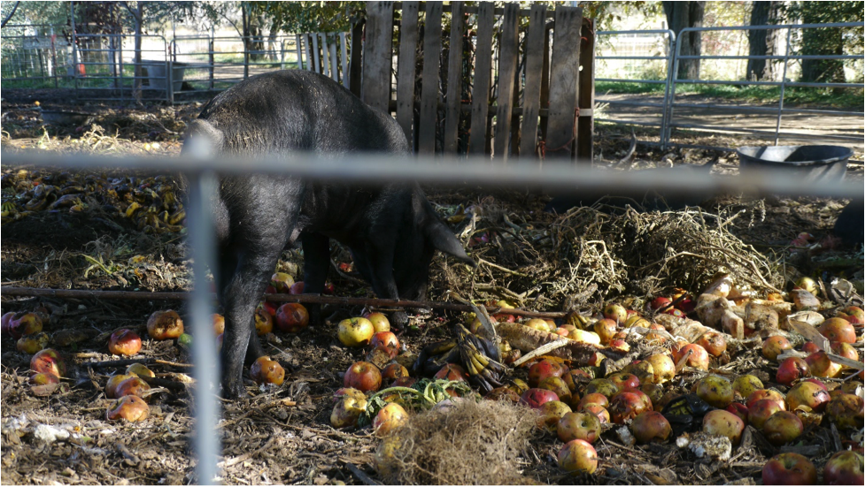 Animals run the show at The Golden Hoof, a small dairy goat farm just ten minutes from Boulder’s bustling center. Despite the proximity to downtown, the farm feels worlds away. It is enchanting even on a chilly, drizzly day, when mist expunges the iconic Flatirons and a traipse around the property requires rain boots and a heavy jacket. Dogs of every body size and color chase each other up the dirt lanes; energetic hens strut under the legs of cows and sheep in a green pasture; ducks saunter through a muddy puddle. Golden Hoof stewards Karyl and Alice Starek point to a plot containing seven or eight large pigs snout-deep in lettuce heads and pineapple stalks. They explain that the pigs are chowing pre-consumer food waste obtained from local restaurants. The pigs produce manure, which layers the ground and matures into rich soil fodder. In a few months, the Stareks will utilize this plot as a vegetable garden.