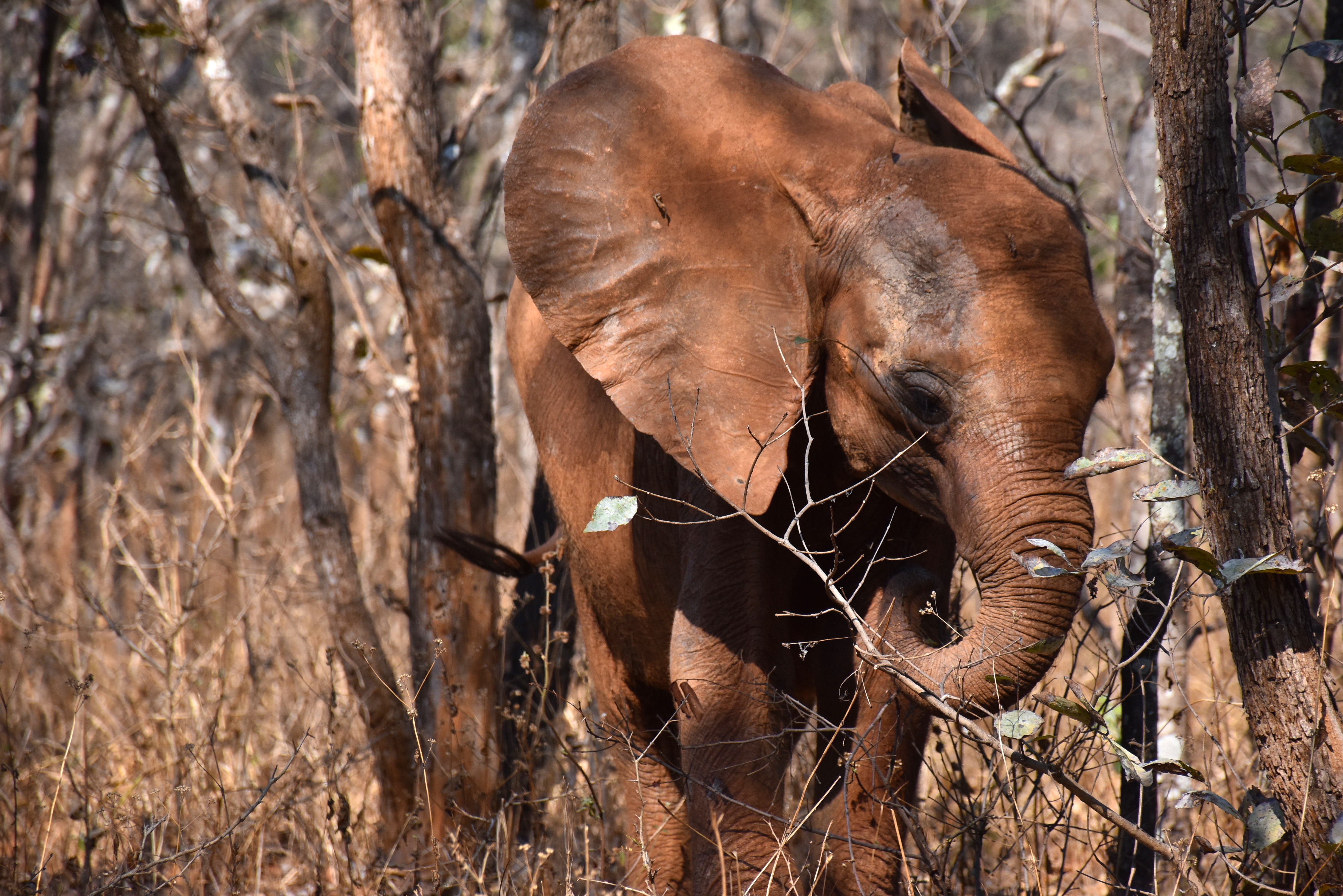 As soon as calves can be weaned from milk (approx 3 years old) they are moved from Lusaka to the Release Facility in Kafue National Park, where they join older orphaned elephants. Here they learn to live more independently and spend much of their time wandering freely through the bush. The Kafue Release Facility is adjacent to the ancient Ngoma Teak Forest where there is a 1,000 strong local elephant population, maximising chances for the orphans to integrate with other elephants and gradually move back into the wild.