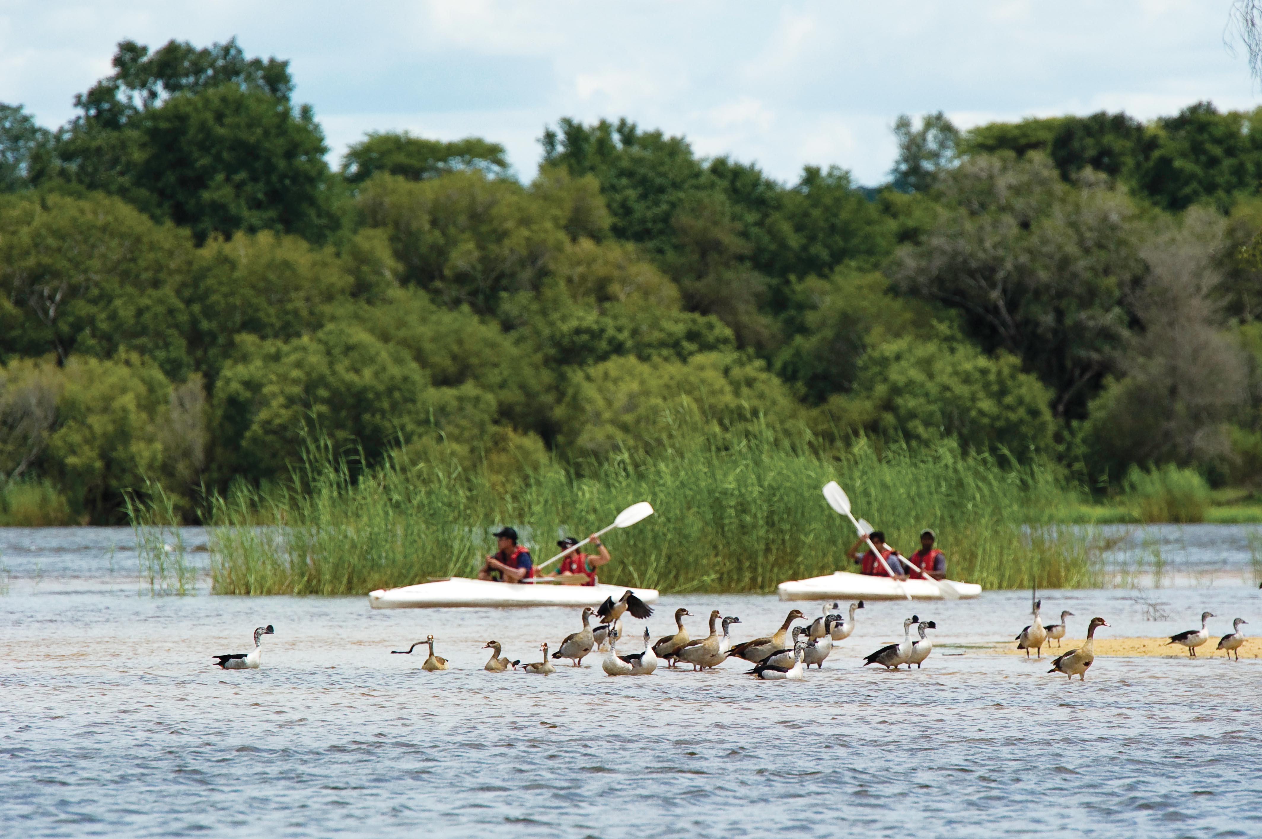 Livingstone’s Adventure is a one stop shop for many of the adventurous options when visiting the falls. If you would prefer to ease yourself gracefully into the ‘adrenaline business’ sign up for an afternoon’s privately guided canoeing safari on the Zambezi, upstream of the Falls. Paddling between the Mosi-oa-Tunya National Park on the Zambian side and the Zambezi Game Park on the Zimbabwean side, you glide past elephants, pods of hippos and a great selection of birdlife.