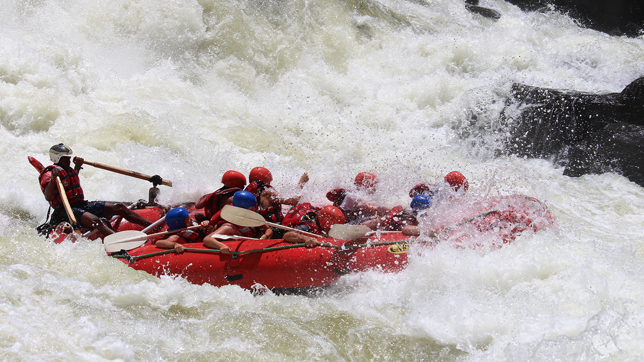 Spend a day rafting with Bundu Adventures, down what is quite probably the wildest commercial white-water in the world. A rafting adventure on the Zambezi River is definitely an adrenaline rush not to be missed. Downstream of the Victoria Falls, the Zambezi River is a kilometres long stretch of deep, zigzagging, torturous channels gouged out of the surrounding basalt, and the incredible volume of water guarantees an exhilarating day of white-water. When, at the pre departure briefing, you hear that the rapids have names like ‘The Terminator’, ‘Oblivion’ and ‘Gnashing Jaws of Death’, you have an inkling of what lies ahead! Your day starts with a hike down to the ‘Boiling Pot,’ a massive whirlpool at the base of the Victoria Falls where you clamber aboard your raft and set off. Although stretches of the route are classed a high-octane Grade 5, there are several areas of scenic, calm water where you get the chance to swim alongside the raft for stretches of the river.