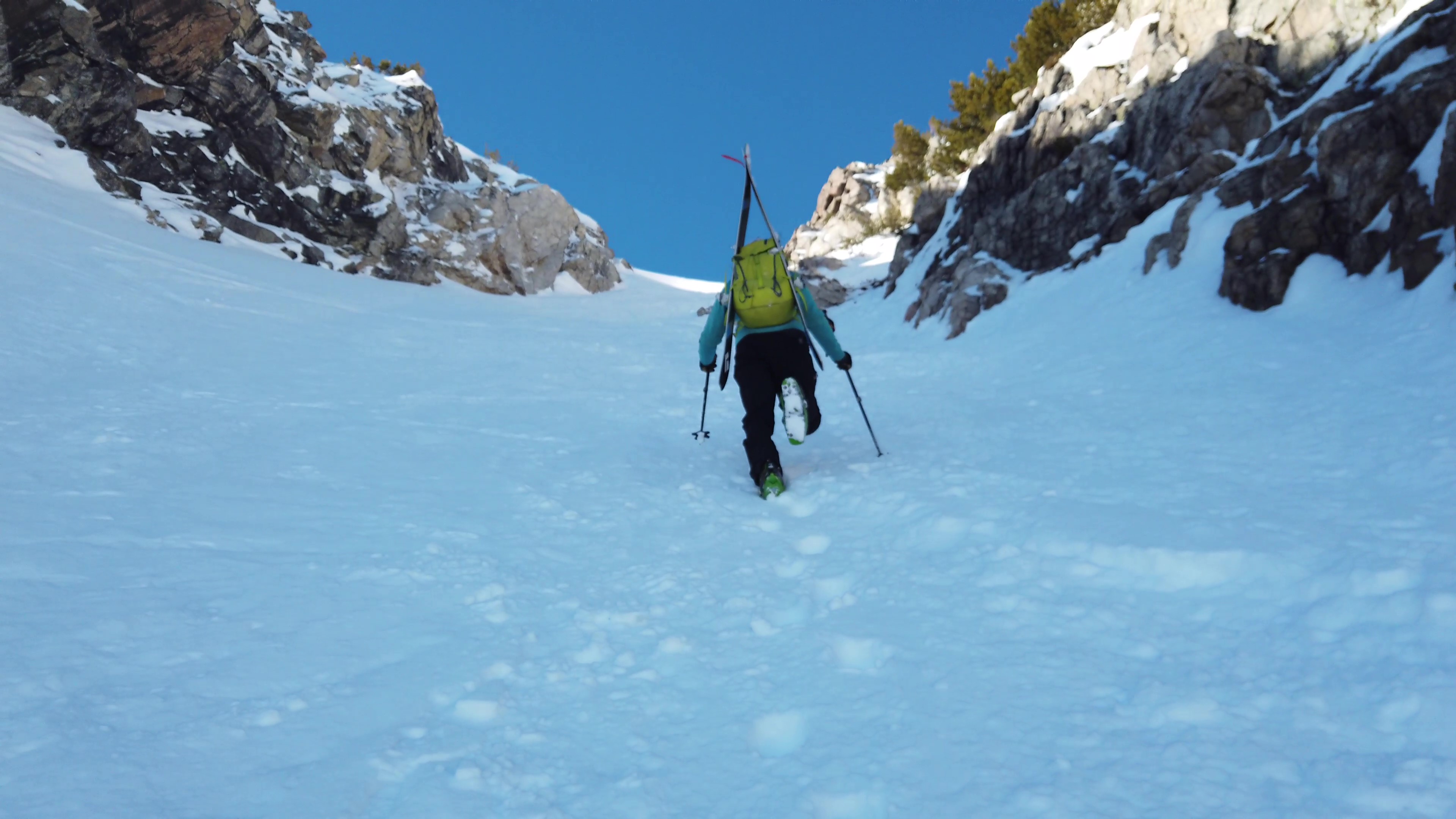 If newborn Jessie was taxing this new dad’s sleep and energy reserves, his athletic, assiduous pace on the skintrack suggested otherwise. I asked Brendan about fatherhood, hoping to glean some insight into my own dad’s relationship with raising a daughter. He hopes to have Jessie on skis the second she can walk; he would be thrilled if she took to alpine or nordic racing, but amenable if she chose not to compete; he is excited to show her the world beyond the boundaries of a ski resort. As we muscled up towards Amphitheater Lake, I mused that twenty years from now, Jessie might look at pictures of her dad guiding in far-flung locales and make plans to fill and transcend those footsteps. I wonder if Brendan knows how much she will look up to him and his accomplishments.