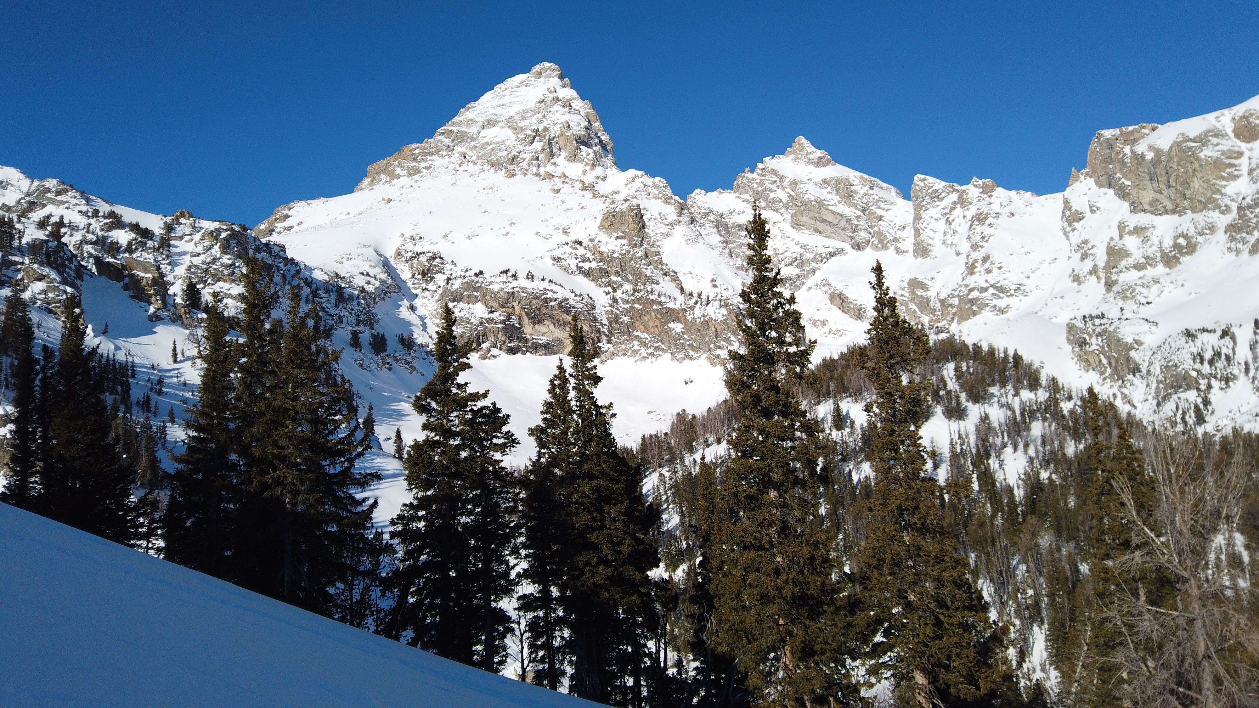 To redeem the remainder of our hard-earned vertical, Brendan led us through a mellow glade percolated with unrumpled pillows aplenty. Matching his cuts through the pines was reminiscent of a childhood spent following my dad around the resort as I learned to trust my edges and my body. As I ripped skins back in the parking lot, giddy with alpine energy, I turned to gaze up at the Grand Teton, senior pinnacle of its range, poised with patriarchal authority over Middle Teton, Mt. Owen, and all the rest. I owe this unforgettable trip to Jackson Hole to my father for choosing to raise and inspire (and generously fund) a skier.