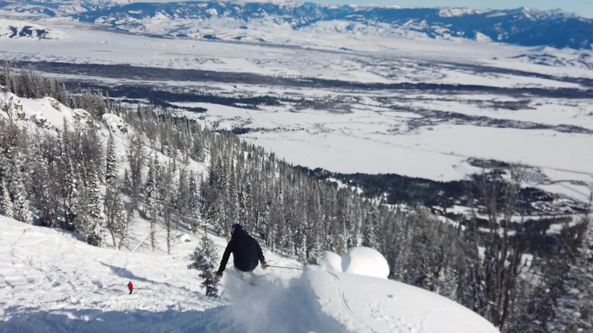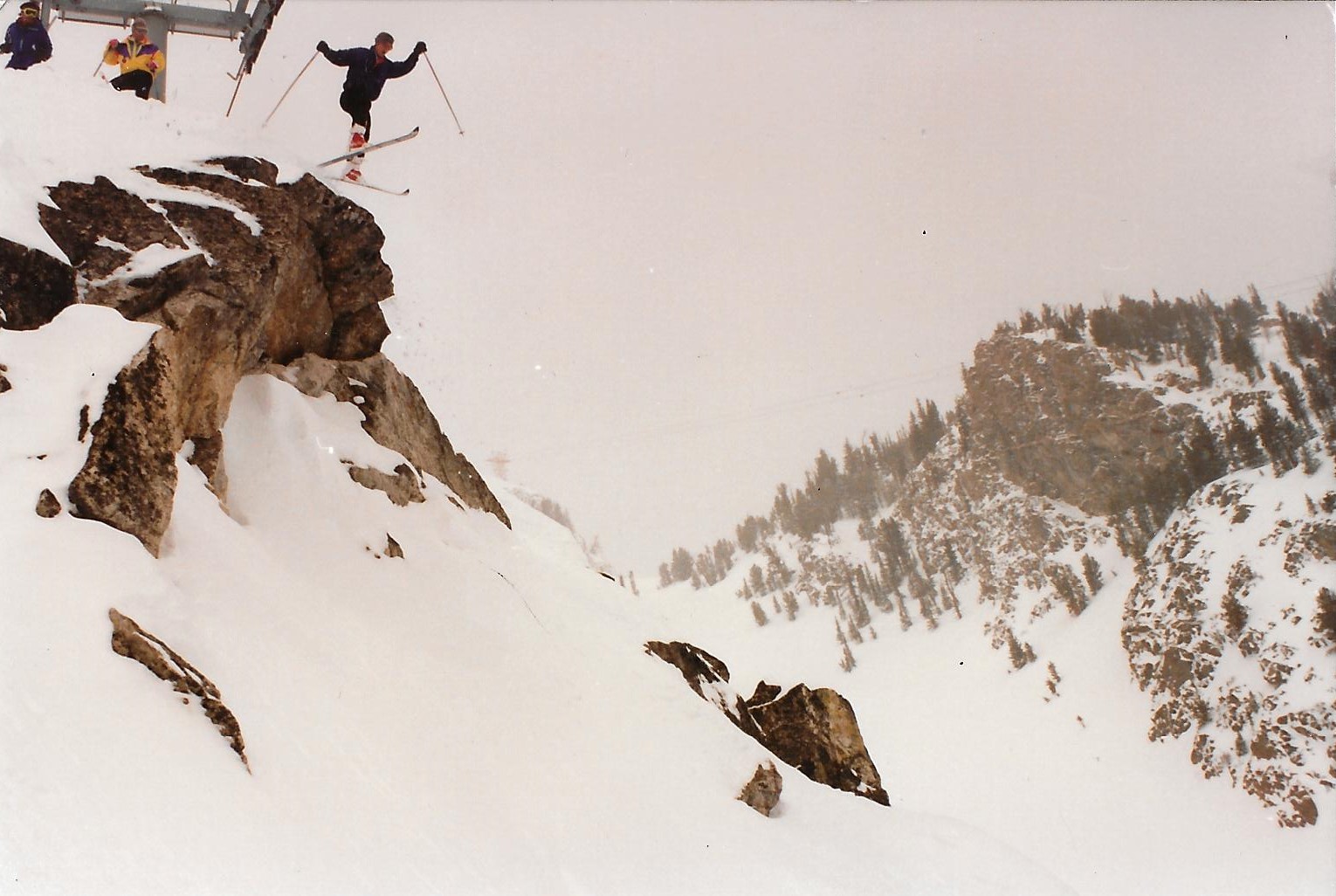Car outfitted with a socioeconomically oxymoronic stash of ramen and expensive ski gear, I punched seven hours northward and arrived the night after a vicious storm cycle spat 20 inches of fresh flakes onto the mountains. The next day popped bluebird and my posse navigated the foreign slopes via trial, error, and the inexhaustible freneticism of college kids on vacation. We nabbed fresh tracks on Headwall and Casper Bowl, giggled down pillows on the Crags, and pinballed around the Hobacks. A ride up in the iconic Jackson Hole tram revealed a closed Corbet’s Couloir, ostensibly requiring another wave of coverage before its seasonal unveiling. I was forced to settle for a waffle at Corbet’s Cabin instead of matching my dad’s drop into the legendary chute. With the blood of my father and powder-fueled adrenaline surging through my veins, I willed myself over the most tantalizing cliffs on offer in Rendezvous Bowl.