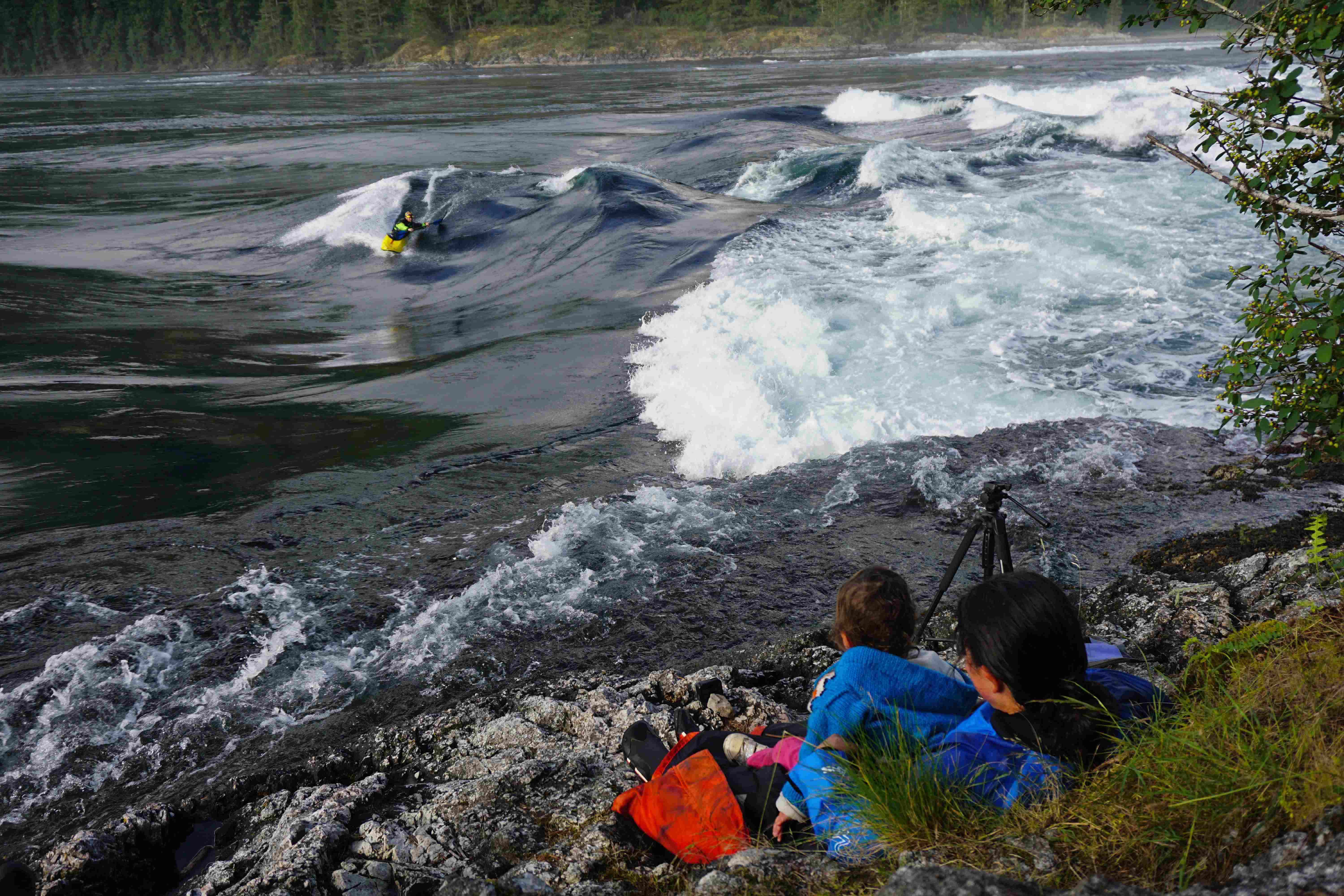 Emily Lussin isn't a world-famous kayaker. But she should be. Today we are kayaking the Skookumchuck Rapids in the Sechelt Inlet on the Sunshine Coast of British Columbia. The wave is good for kayaking when the tide is at max flood, and today the tide is just right. Emily and her partner, Dru, live in a cabin across the Inlet from the Rapids. As soon as Emily gets in her kayak, you can tell this is her home wave. She maneuvers her kayak with minimal effort, performing aerial spins, flips, and barrel rolls that I have only ever seen performed by the world’s top male freestyle kayakers. I watch as she throws a pistol flip- a 180 degree spin combined with a front flip- and then flushes off the back of the wave. She casually paddles back to shore, jumps out of her kayak, and joins Dru on the picnic cloth they have laid out on the rocks. What I previously assumed to be a bundle of blankets is now a babbling and laughing toddler. Now that Emily has taken her first ride, it is Dru’s turn to go kayaking. Throughout their kayaking session, the couple will take turns kayaking and care-taking. Each of them gets equal time on the wave, as well as equal time with their daughter, Mya.
