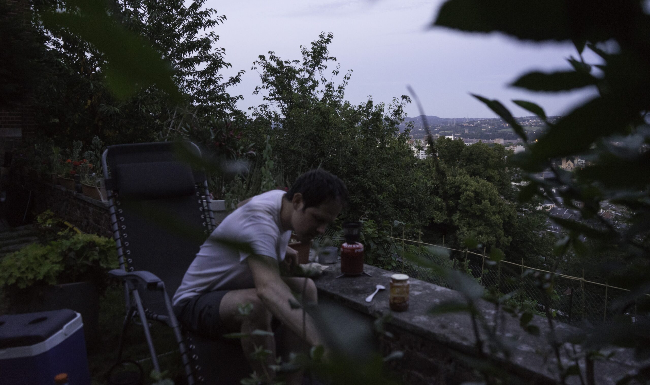 To further simulate being on the mountain, Loncke slept five hours on the first night and four hours on the second night in his tent nearby thanks to a gracious neighbor.